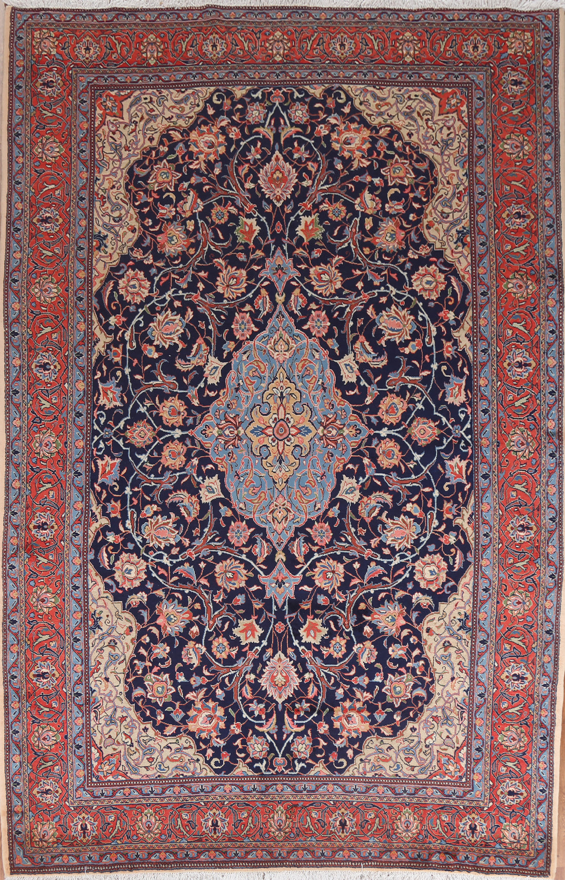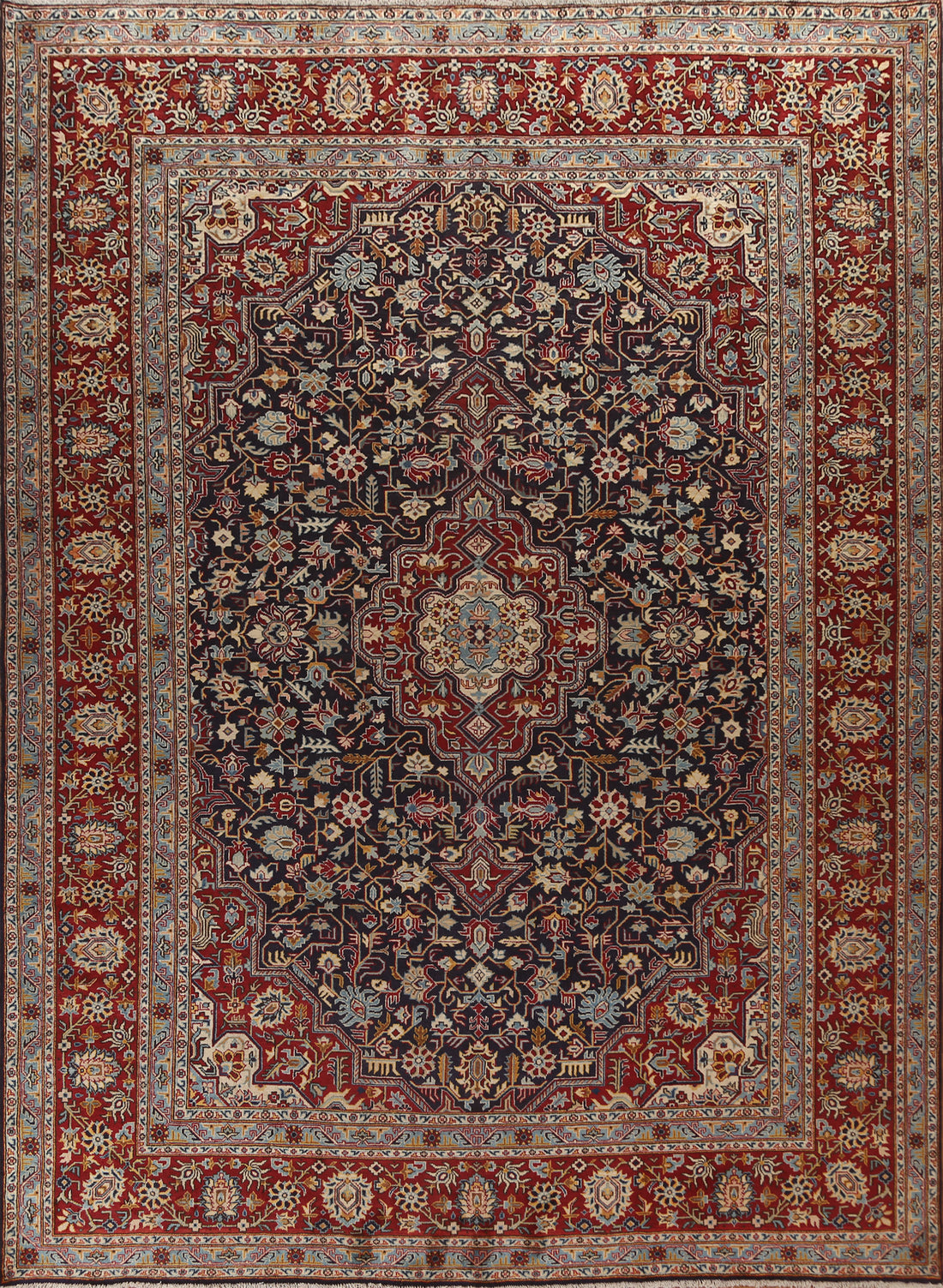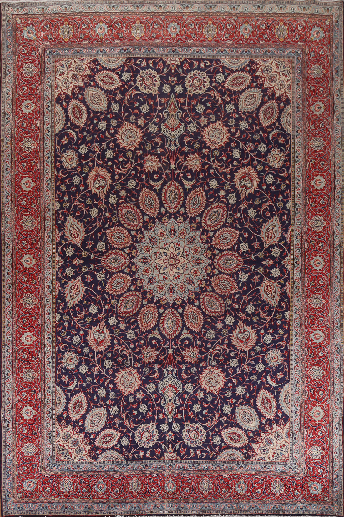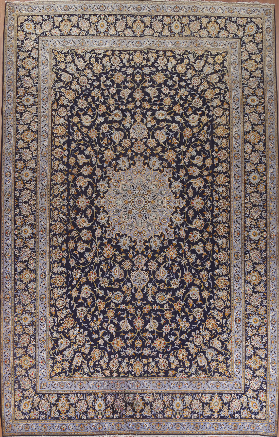 Large Navy Blue Floral Kashan Persian Rug 11x16