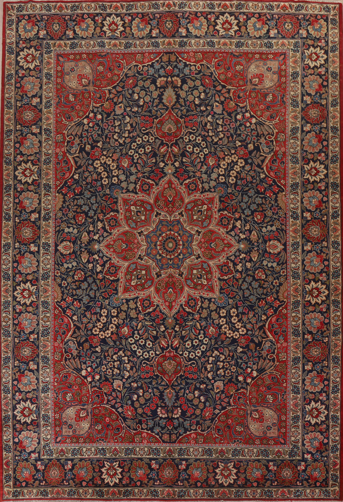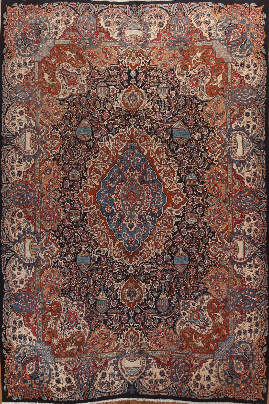 Navy Blue Floral Kashmar Persian Area Rug 10x13