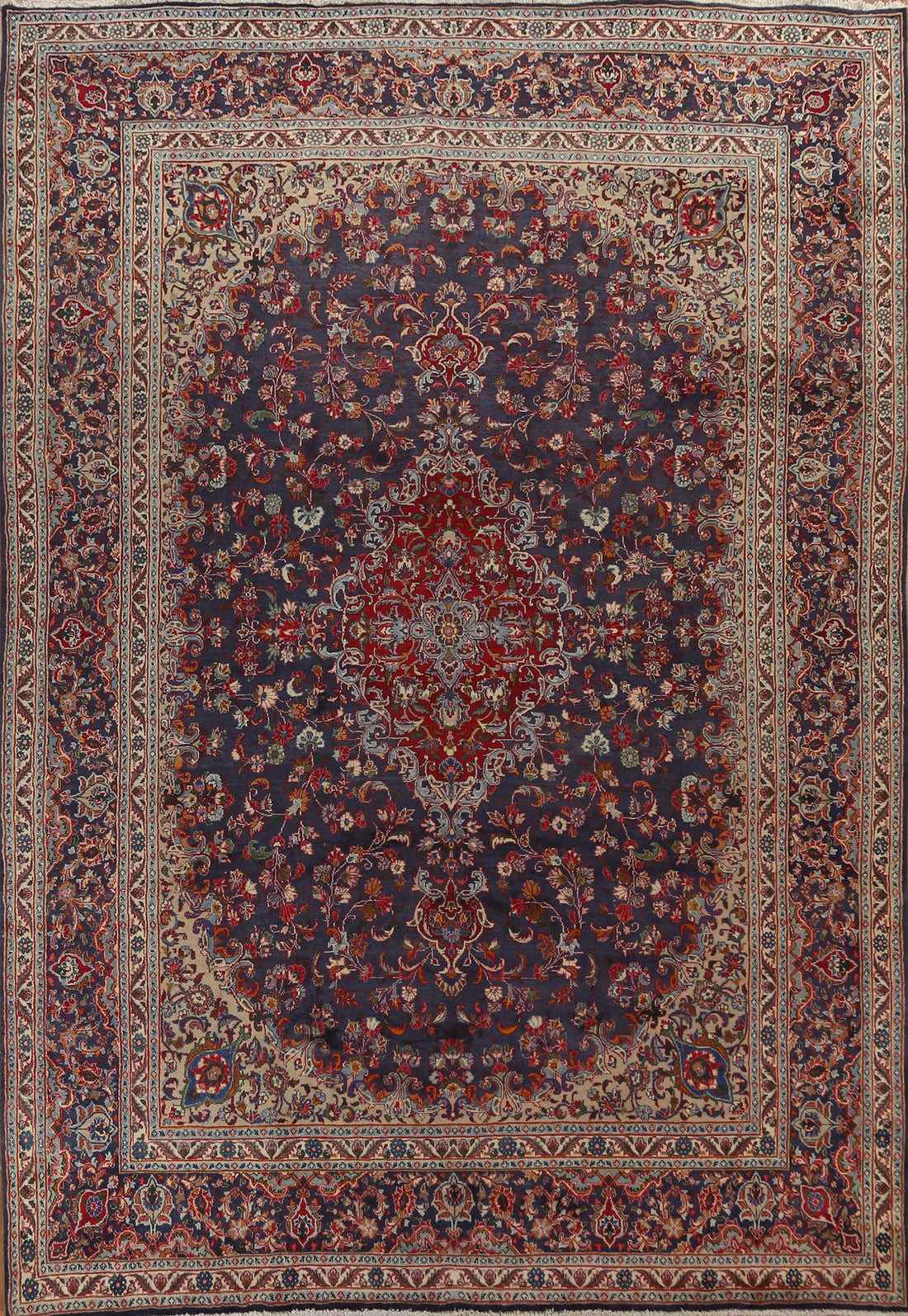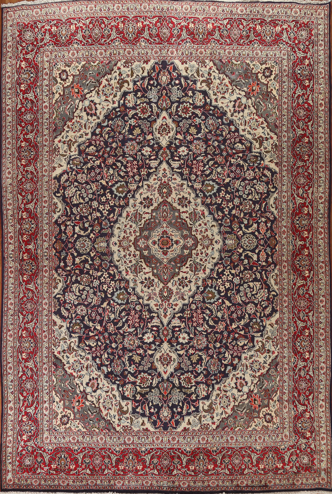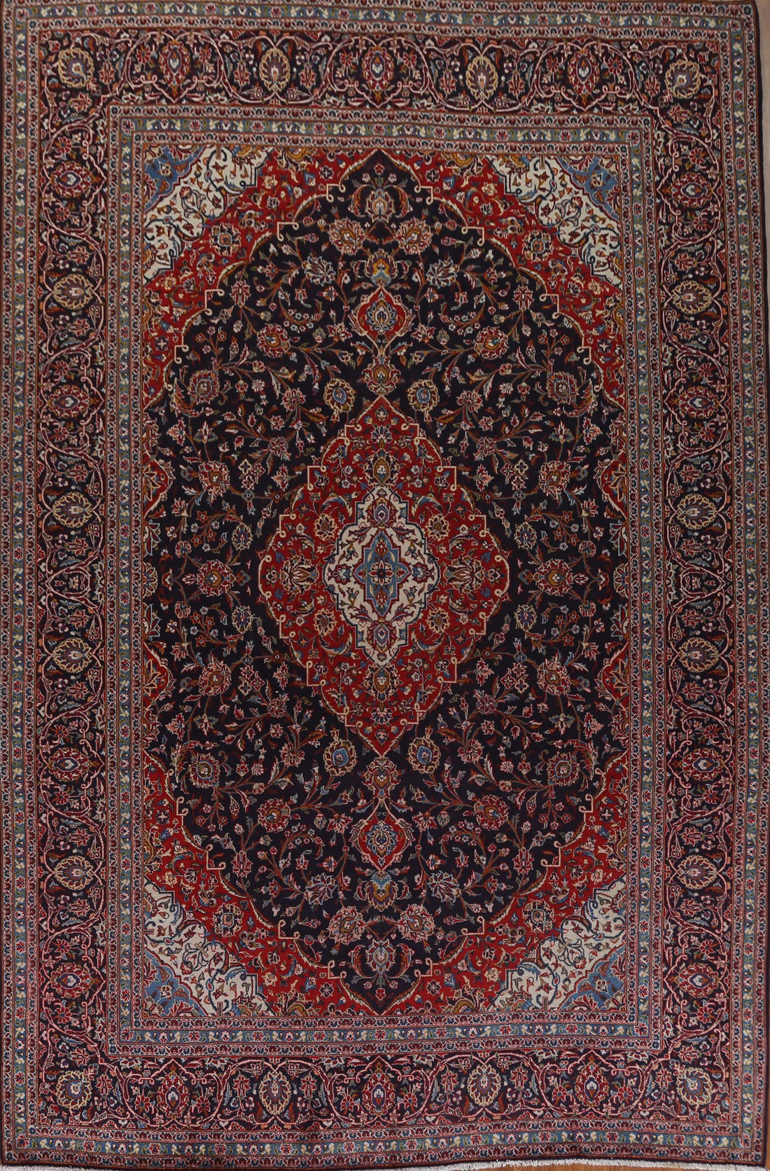 Navy Blue Floral Kashan Persian Area Rug 10x13