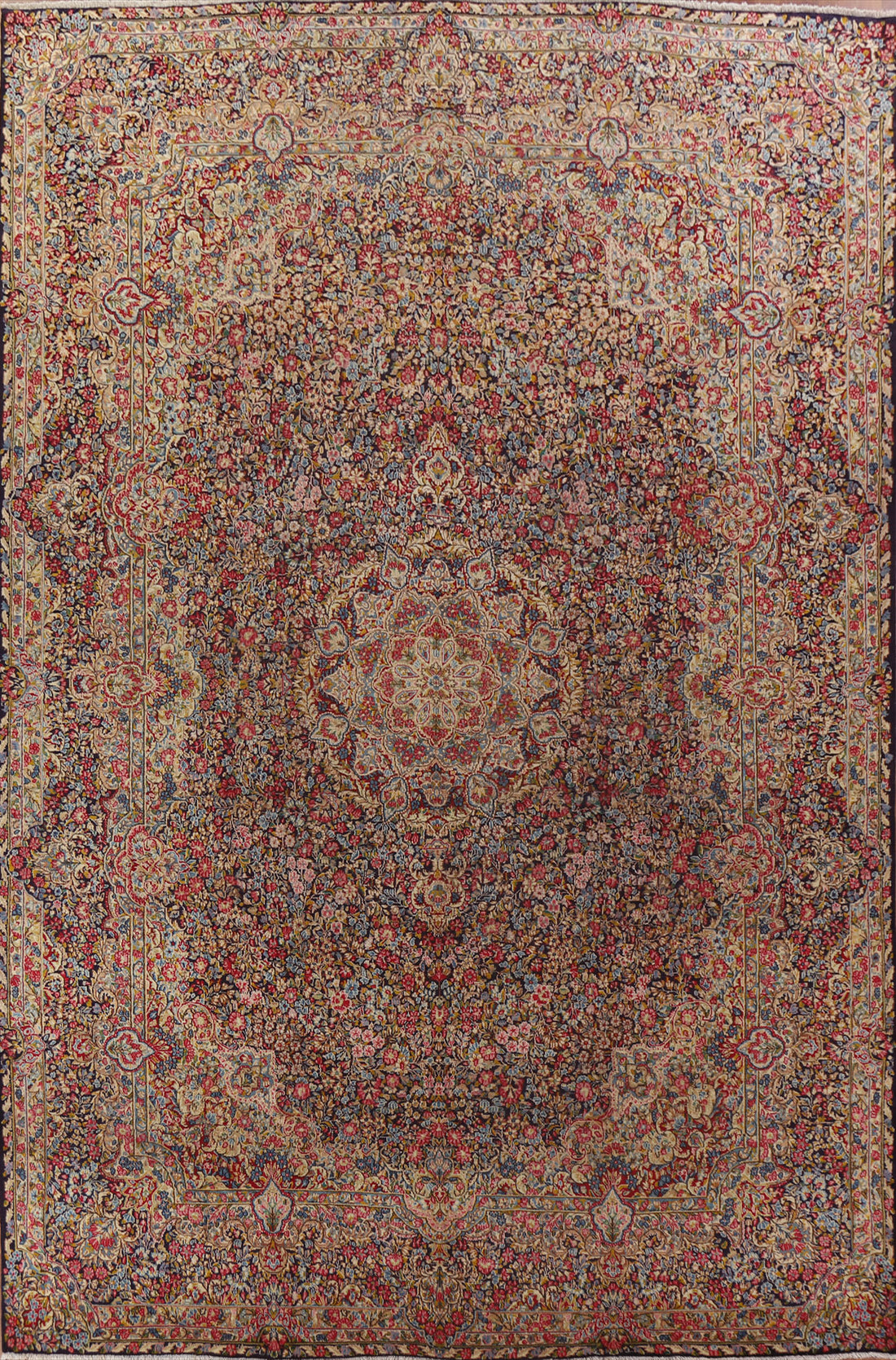 Vintage Floral Wool Kerman Persian Area Rug 10x13