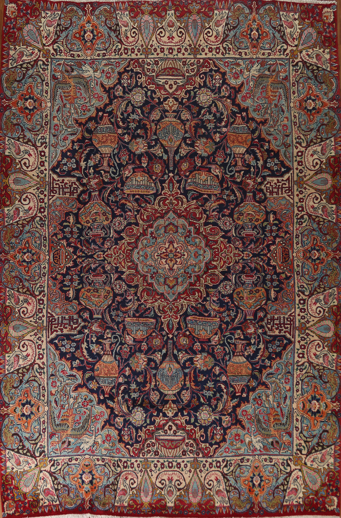 Navy Blue Floral Kashmar Persian Area Rug 8x11