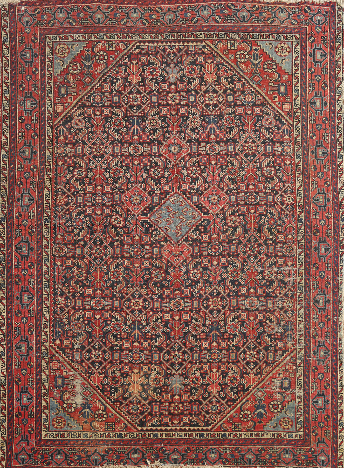 Pre-1900 Vegetable Dye Bidjar Halvaei Persian Rug 4x6