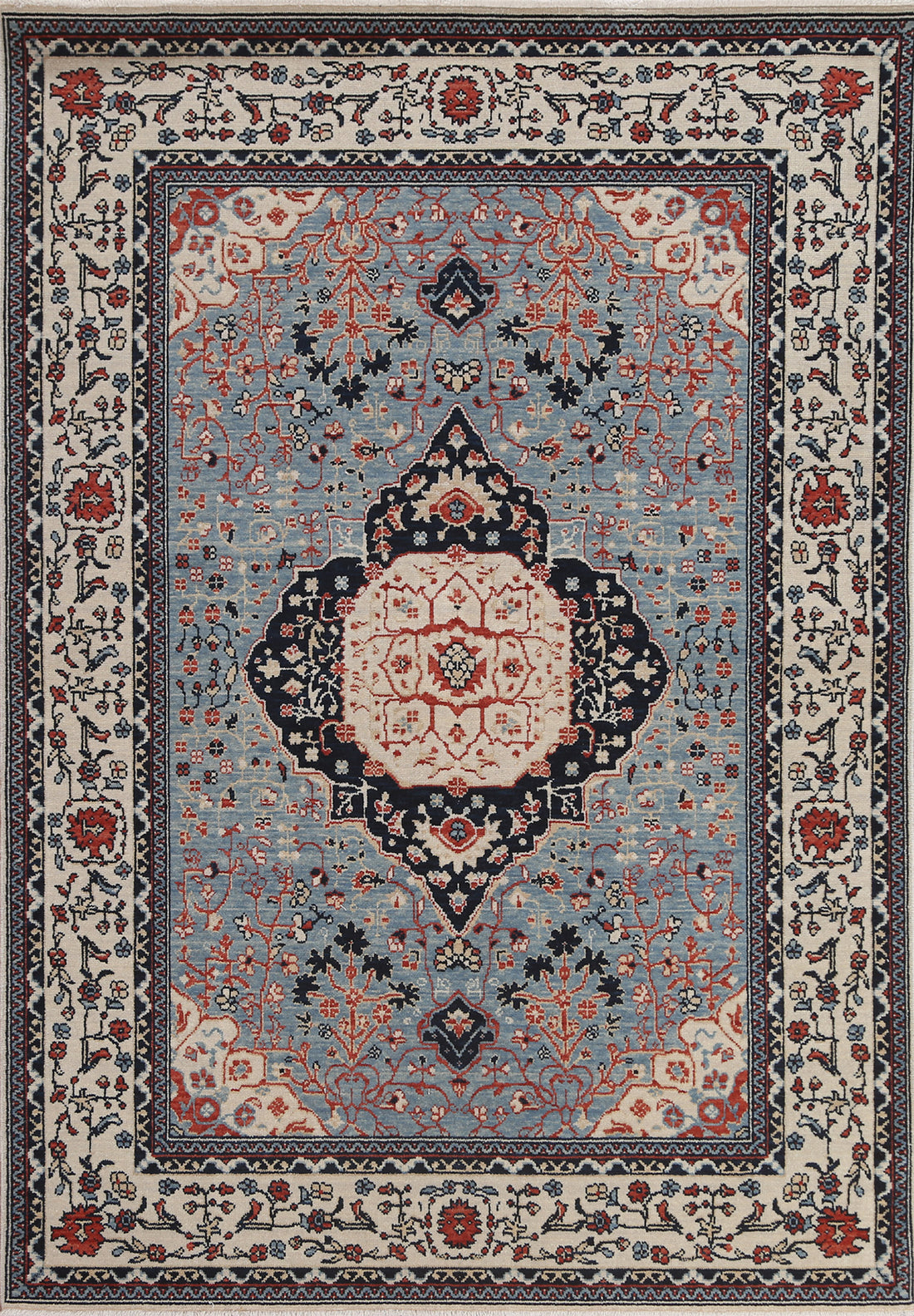 Light Blue Floral Ziegler Turkish Wool Rug 4x6