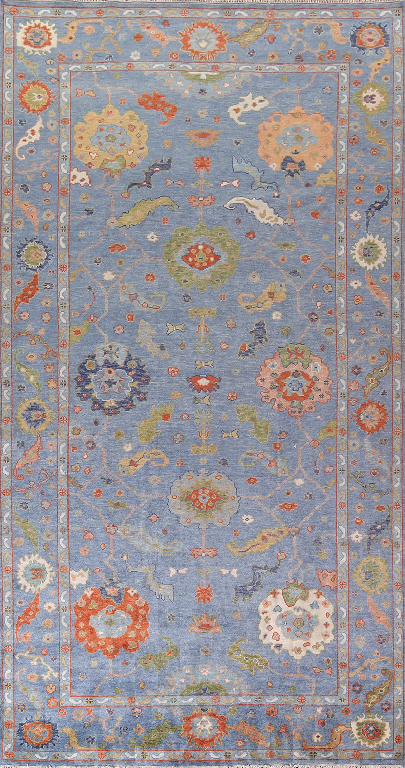 All-Over Blue Floral Oushak Oriental Rug 8x16