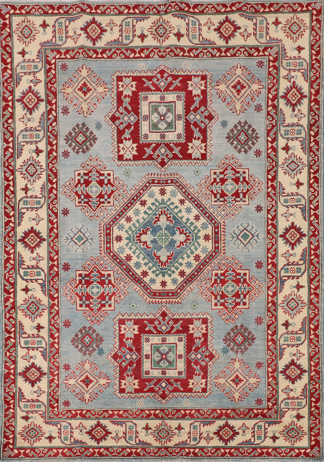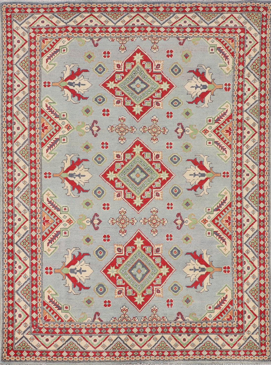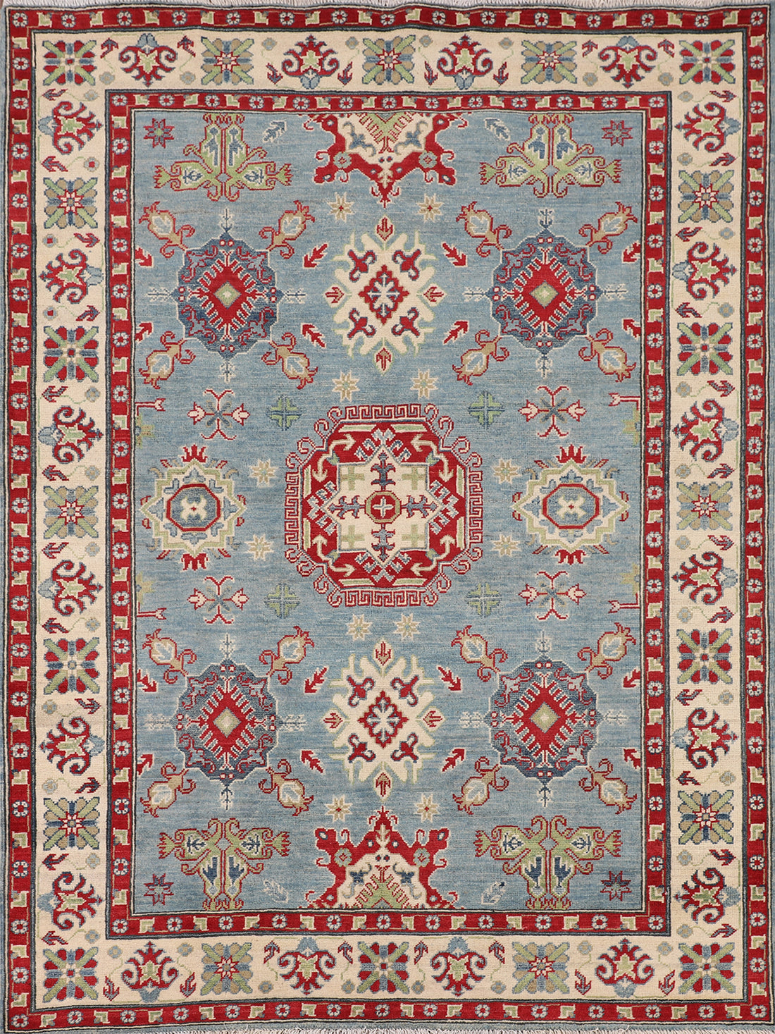Light Blue Geometric Kazak Oriental Rug 5x7