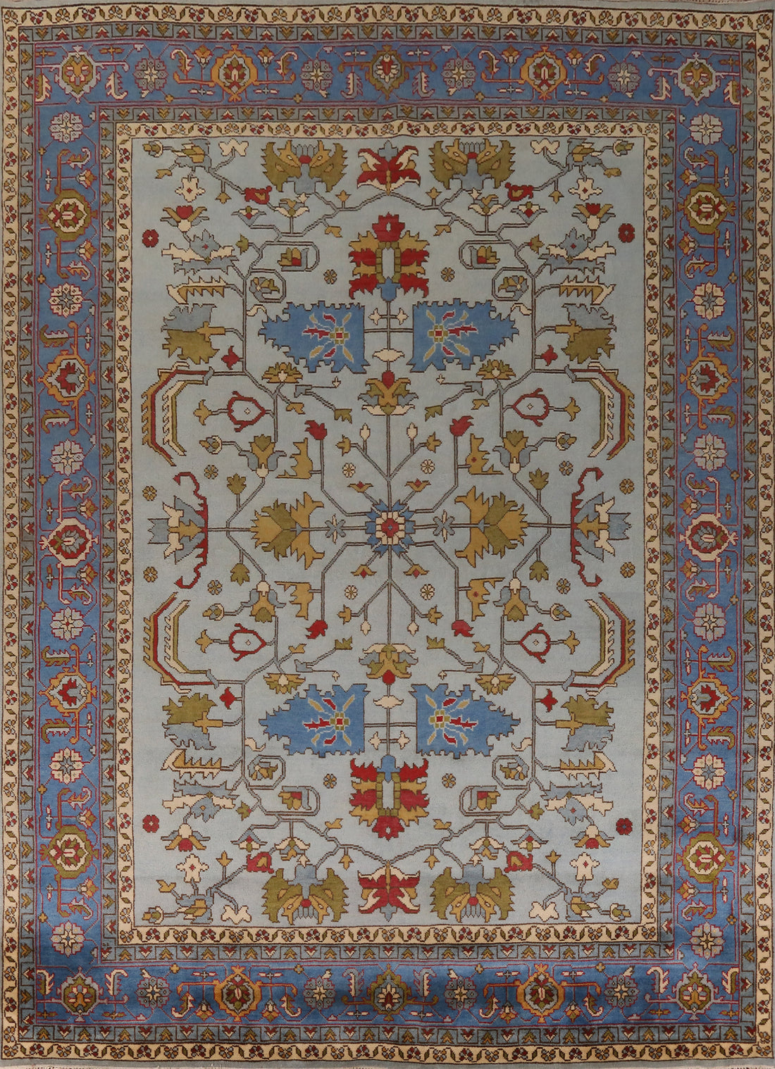 Light Blue Geometric Oushak Indian Area Rug 9x12