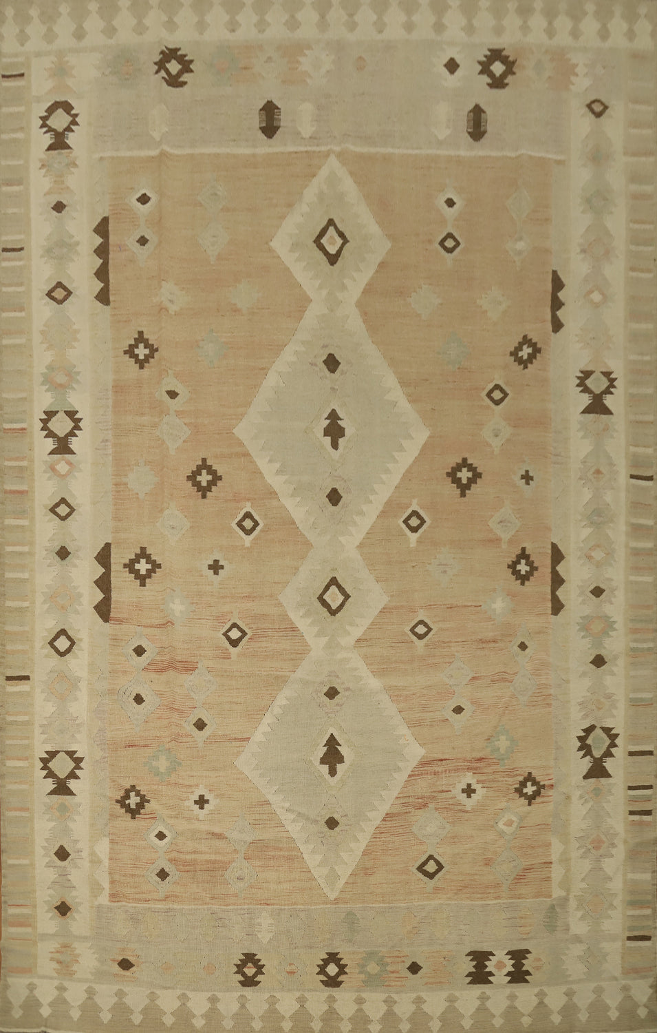 Unique Tribal Patterns on Handcrafted Kilim Area Rug 6x9