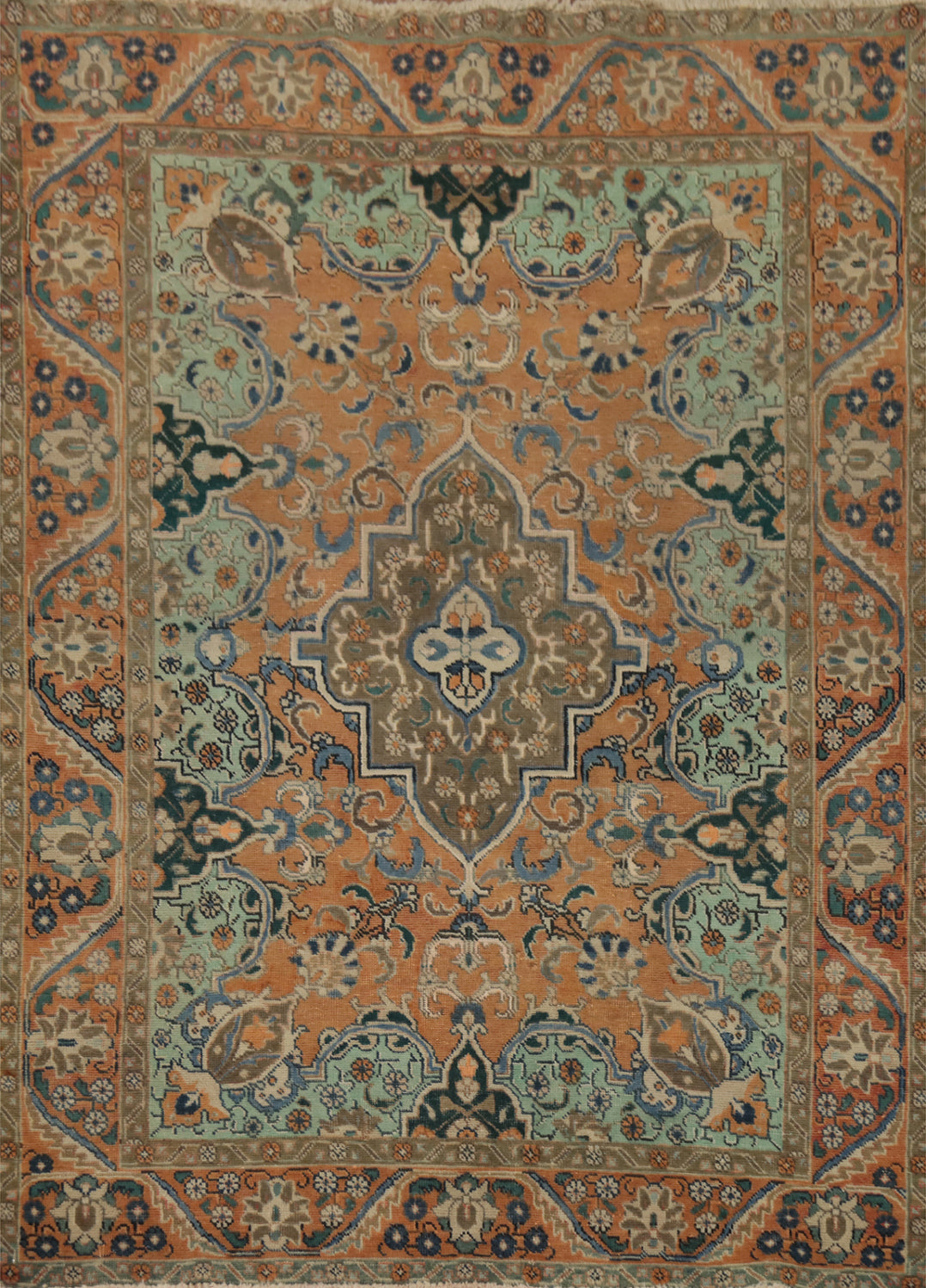Handmade Wool Orange Tabriz Persian Rug 5x7