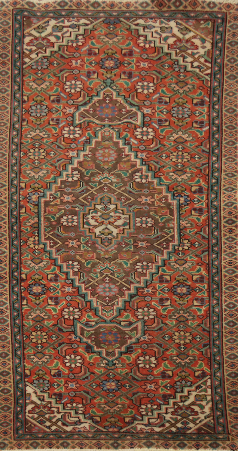 Vintage Geometric Ardebil Persian Runner Rug 4x10
