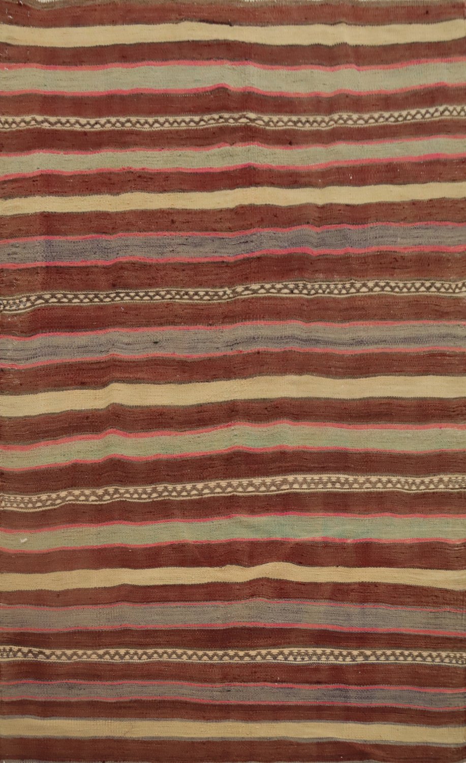 Vegetable Dye Kilim Striped Wool Area Rug 5x8
