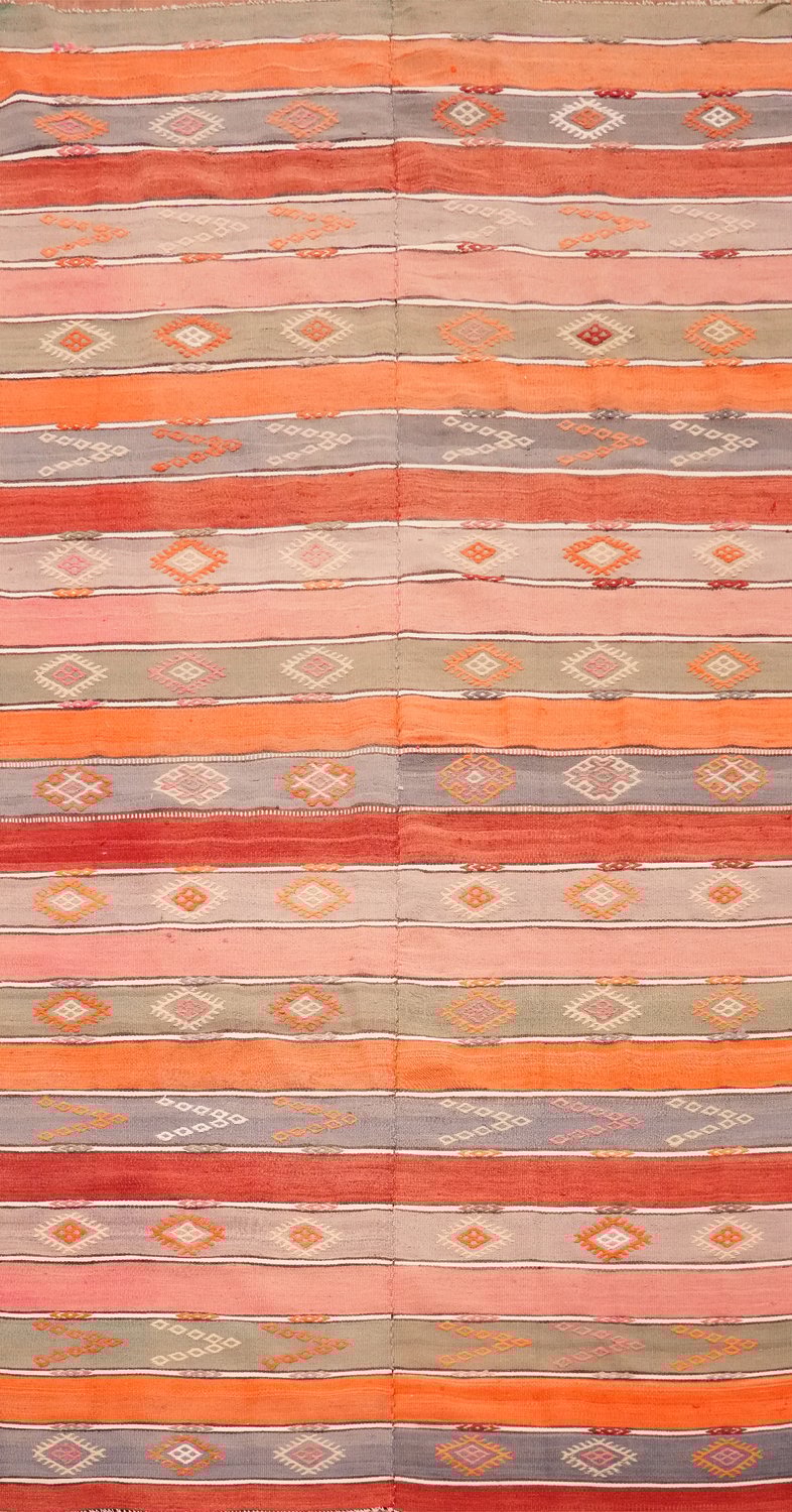 Vegetable Dye Kilim Striped Wool Runner Rug 4x9