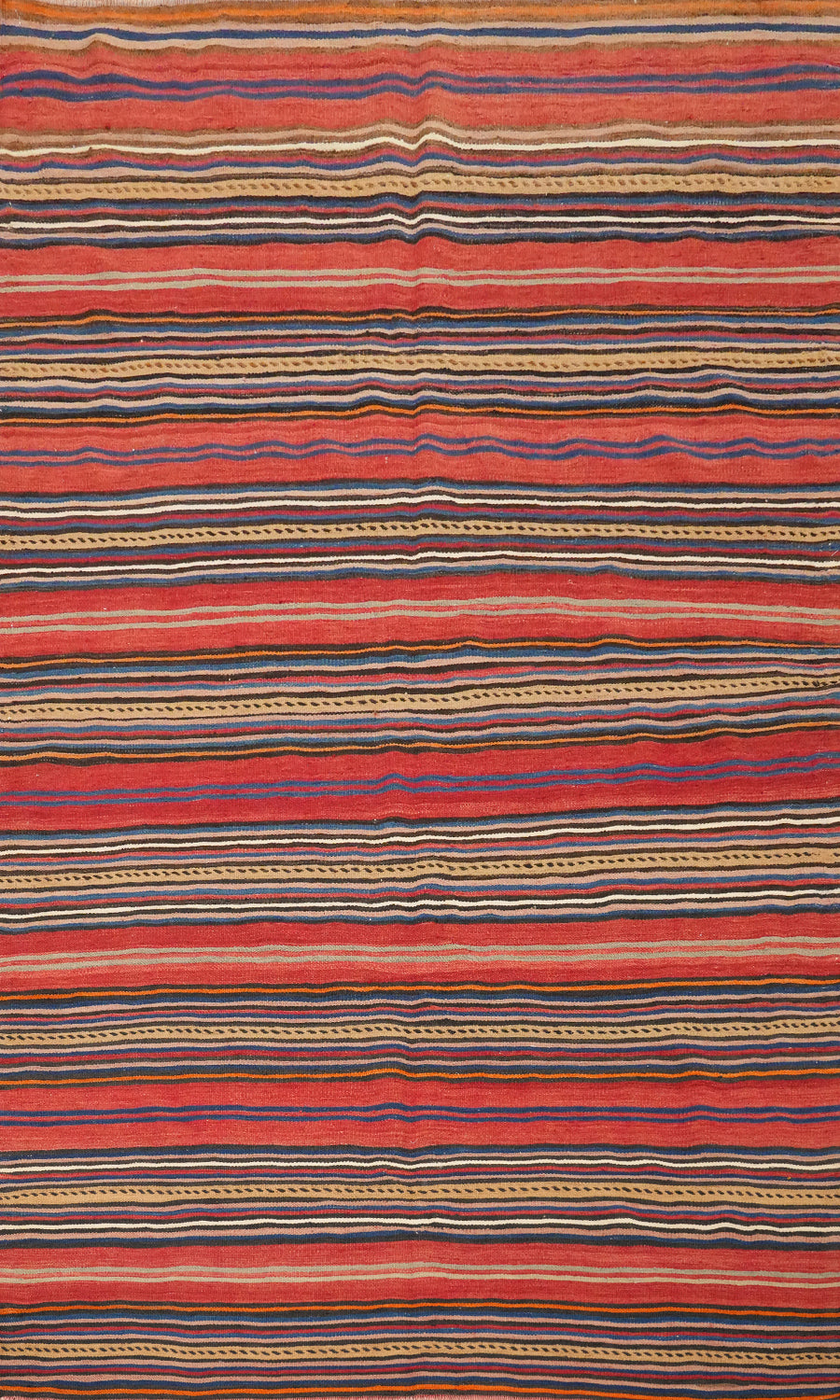 Vegetable Dye Kilim Striped Wool Area Rug 5x10