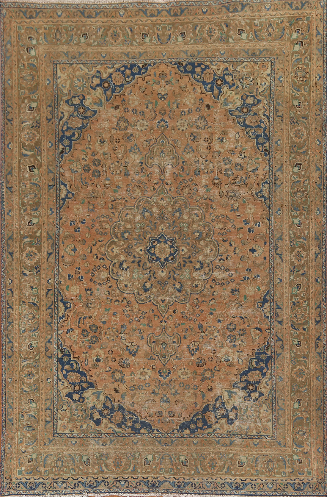 Over-Dyed Distressed Kashan Wool Persian Rug 7x9