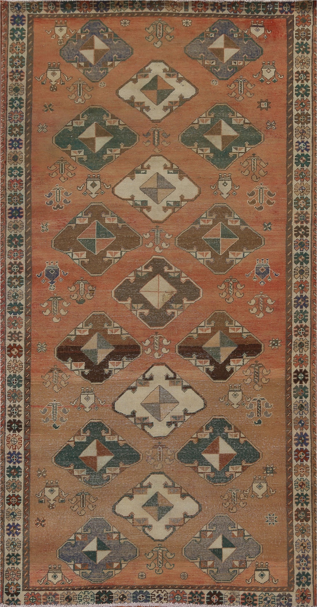 Antique Orange & Blue Kazak Vegetable Dye Area Rug 5x8