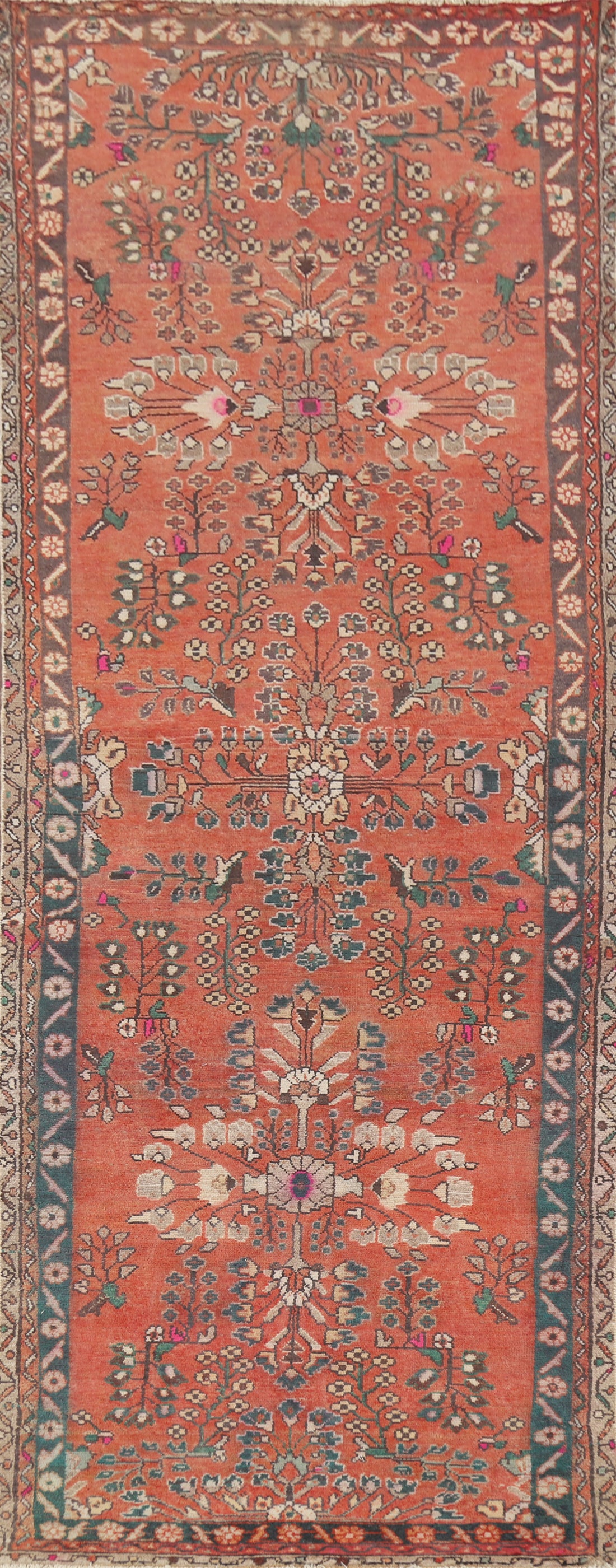 Vintage Floral Hamedan Persian Runner Rug 3x10