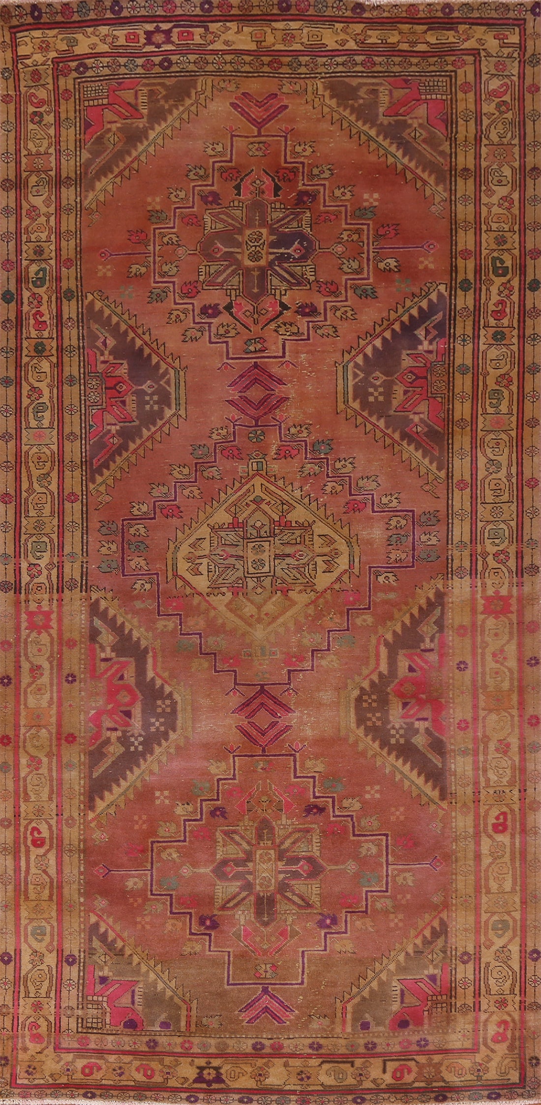 Vintage Geometric Heriz Persian Runner Rug 4x10