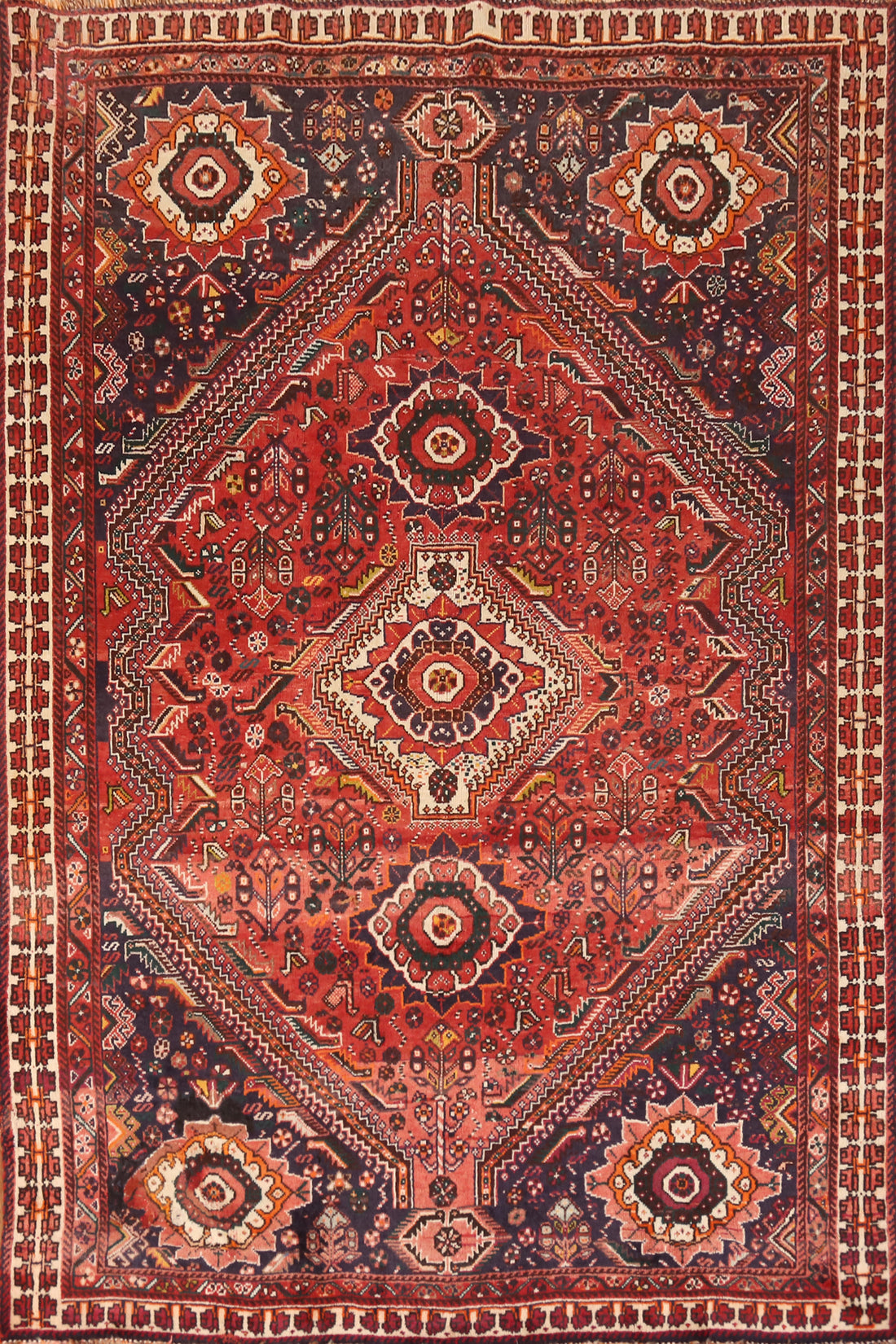 Vintage Geometric Shiraz Persian Rug 5x7