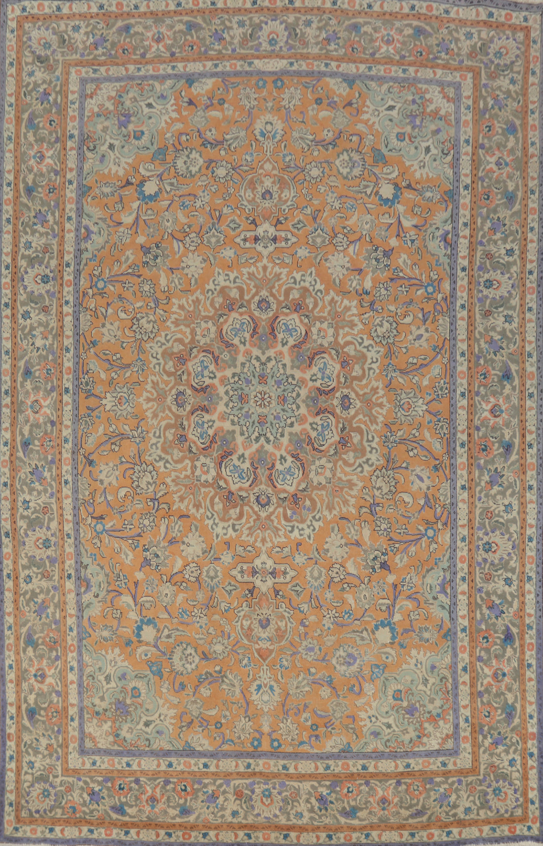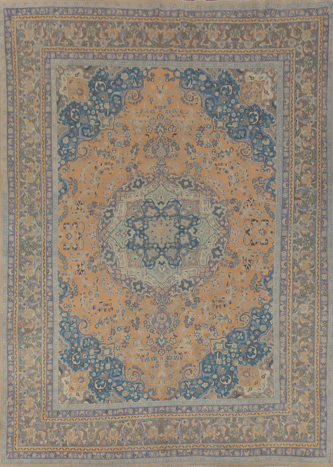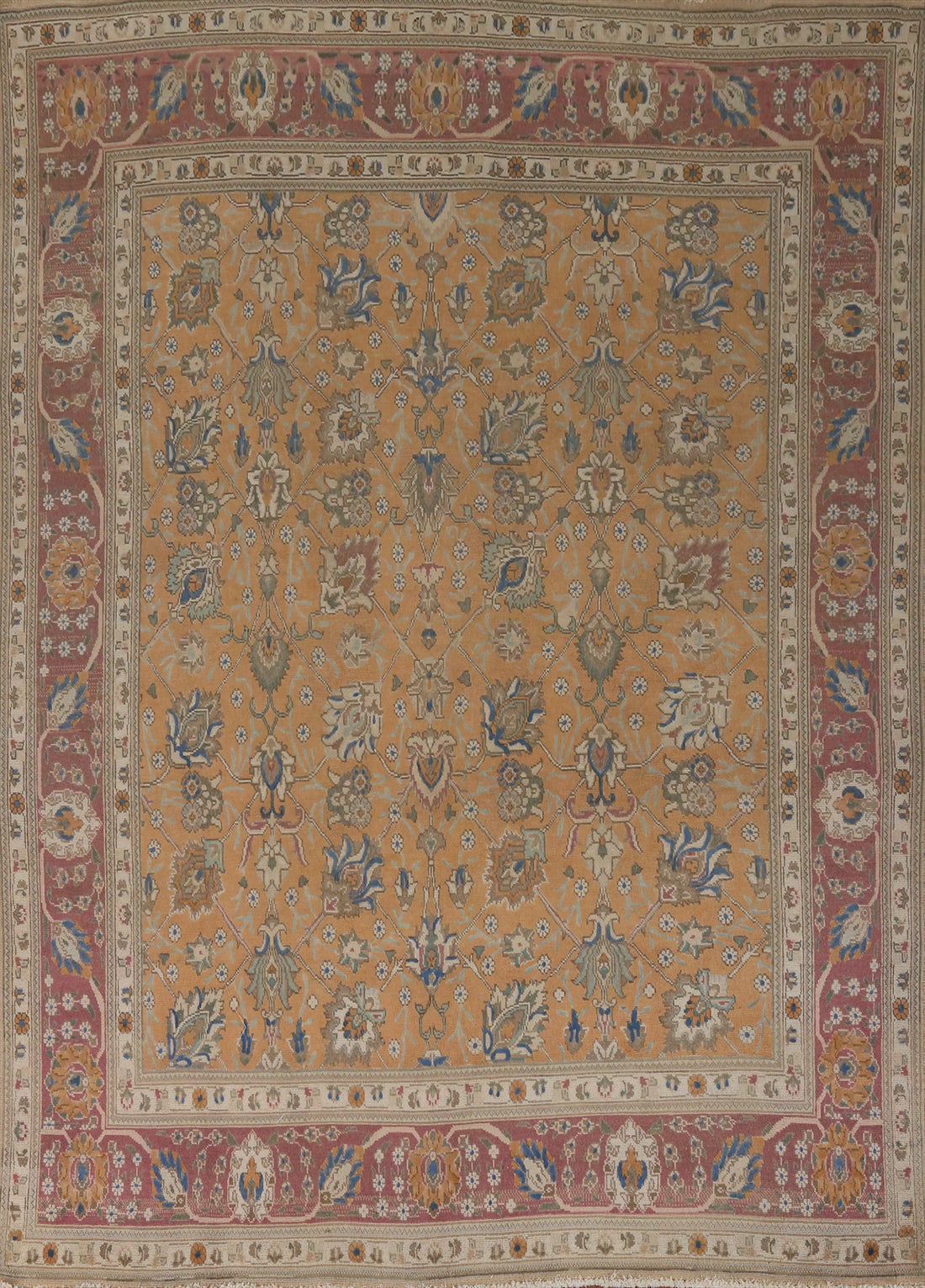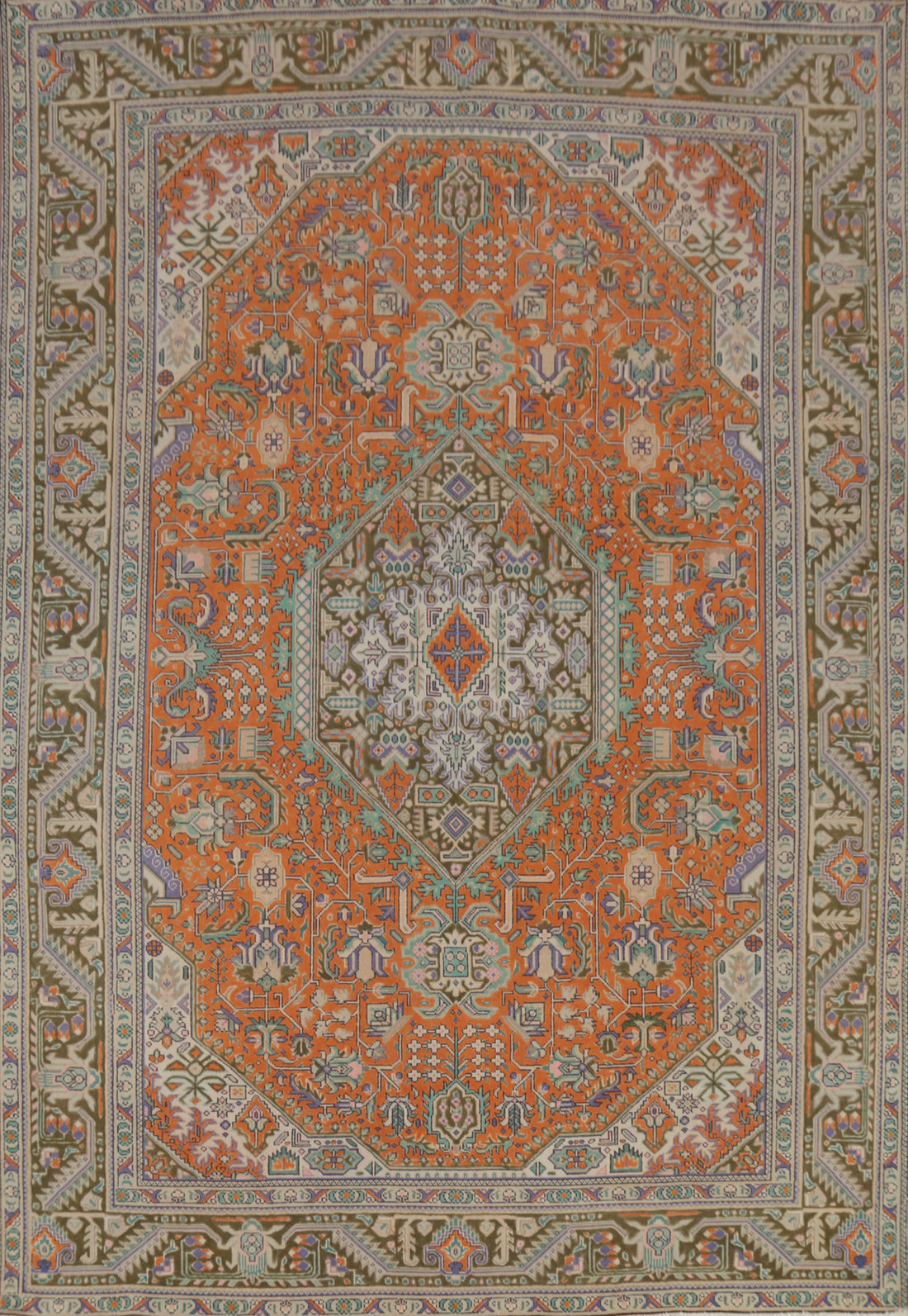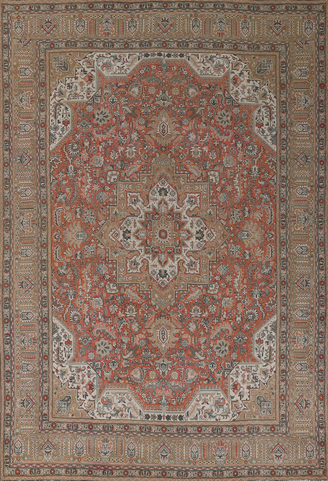 Traditional Wool Orange Tabriz Persian Area Rug 10x13