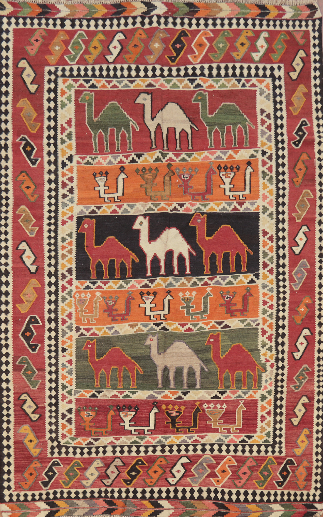 Vegetable Dye Kilim Qashqai Persian Area Rug 5x8