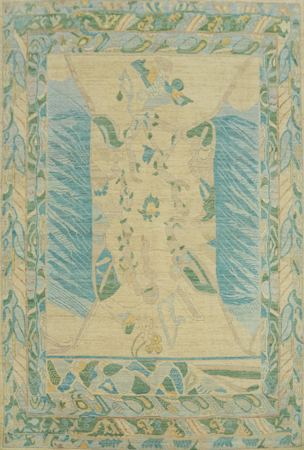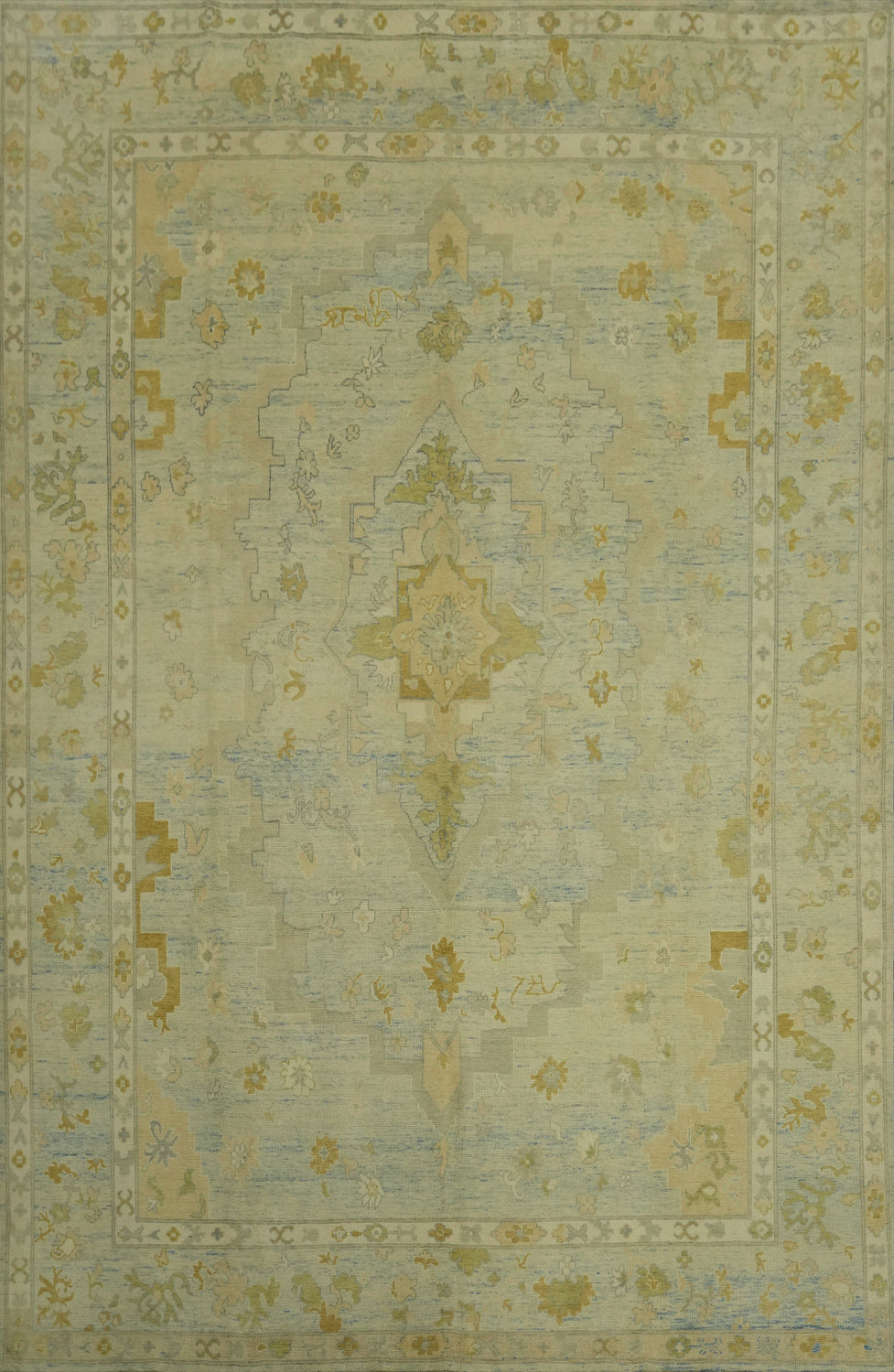 Light Blue Floral Oushak Vegetable Dye Area Rug 9x12