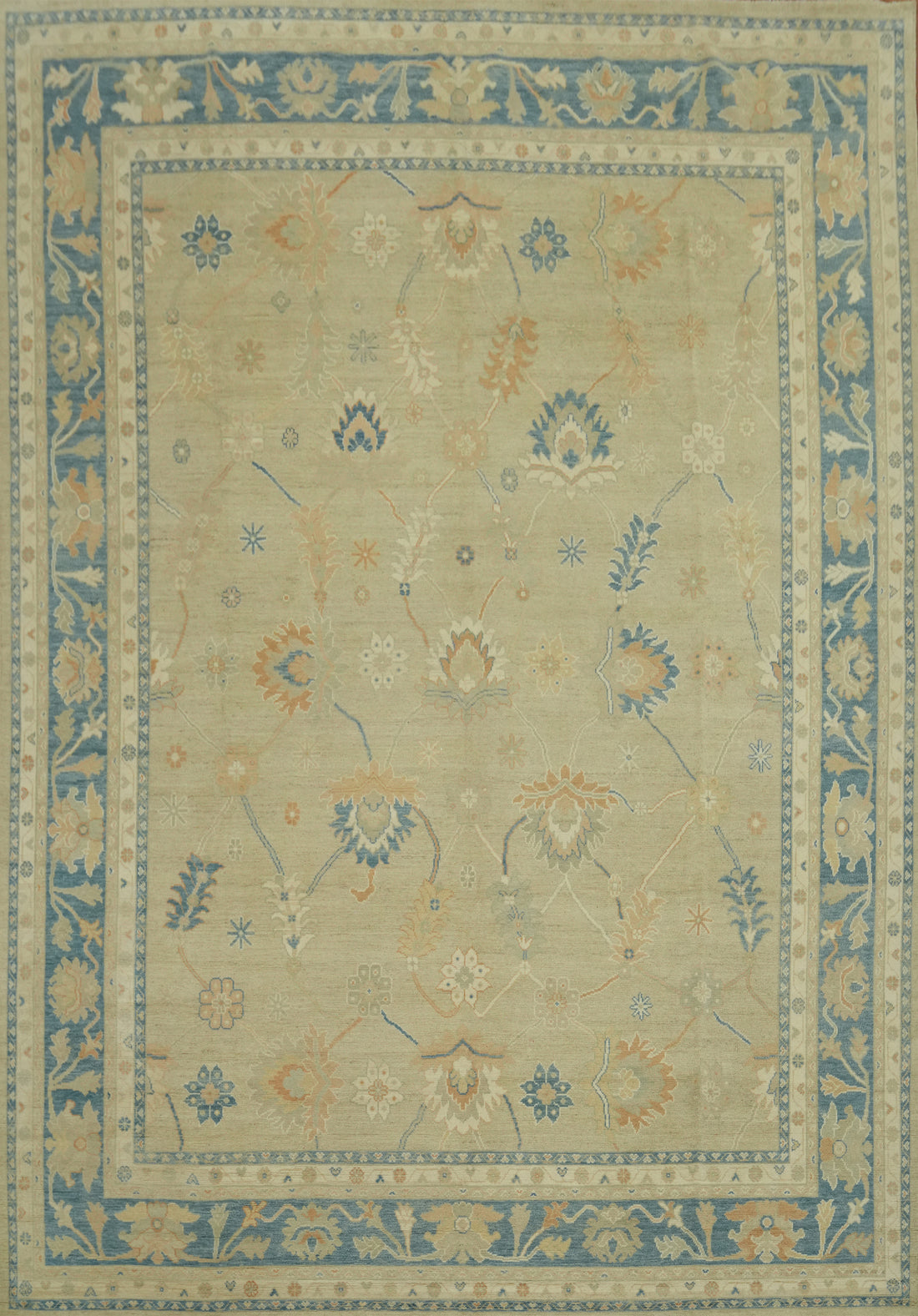 Floral Blue Oushak Vegetable Dye Large Rug 13x20