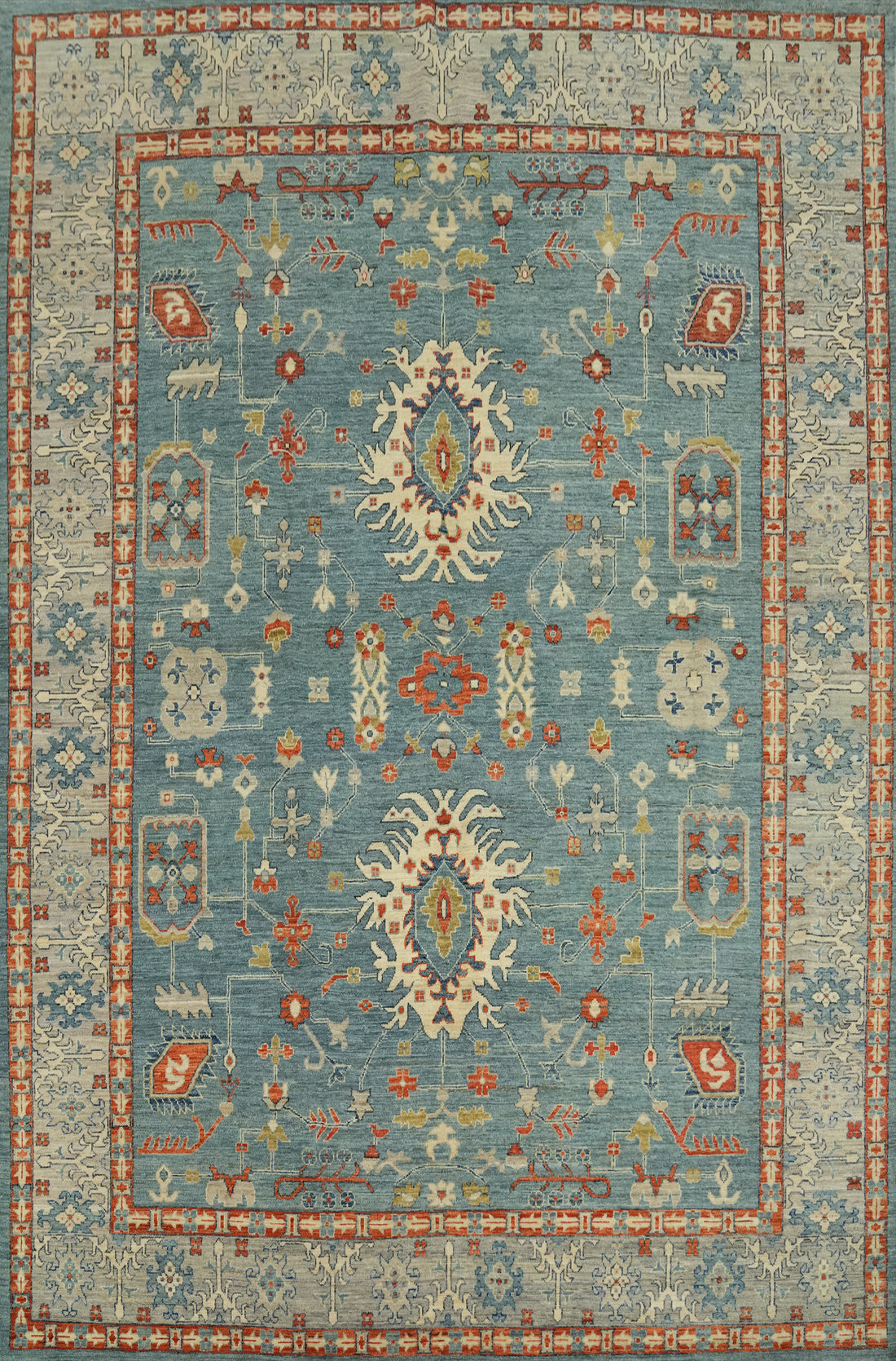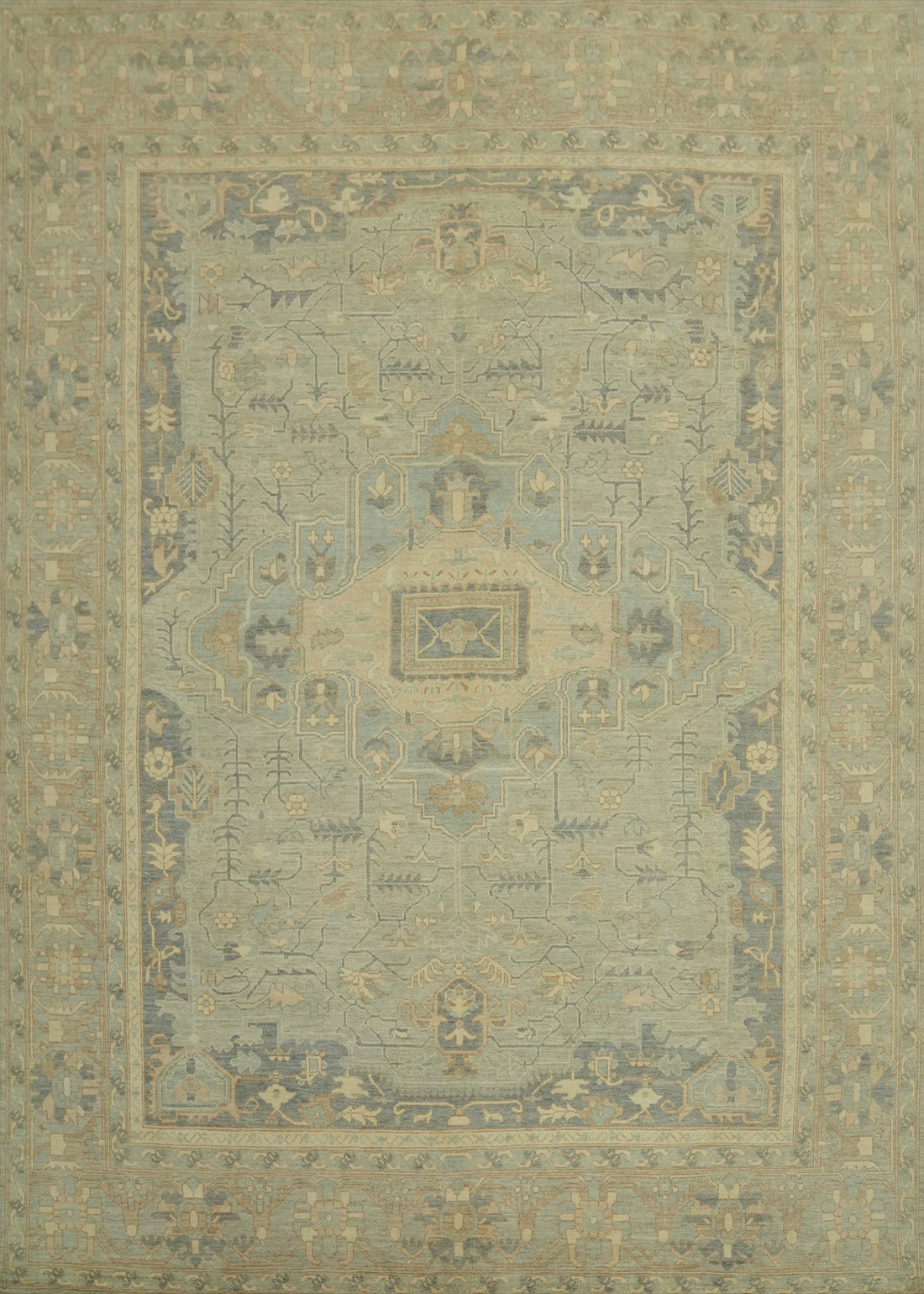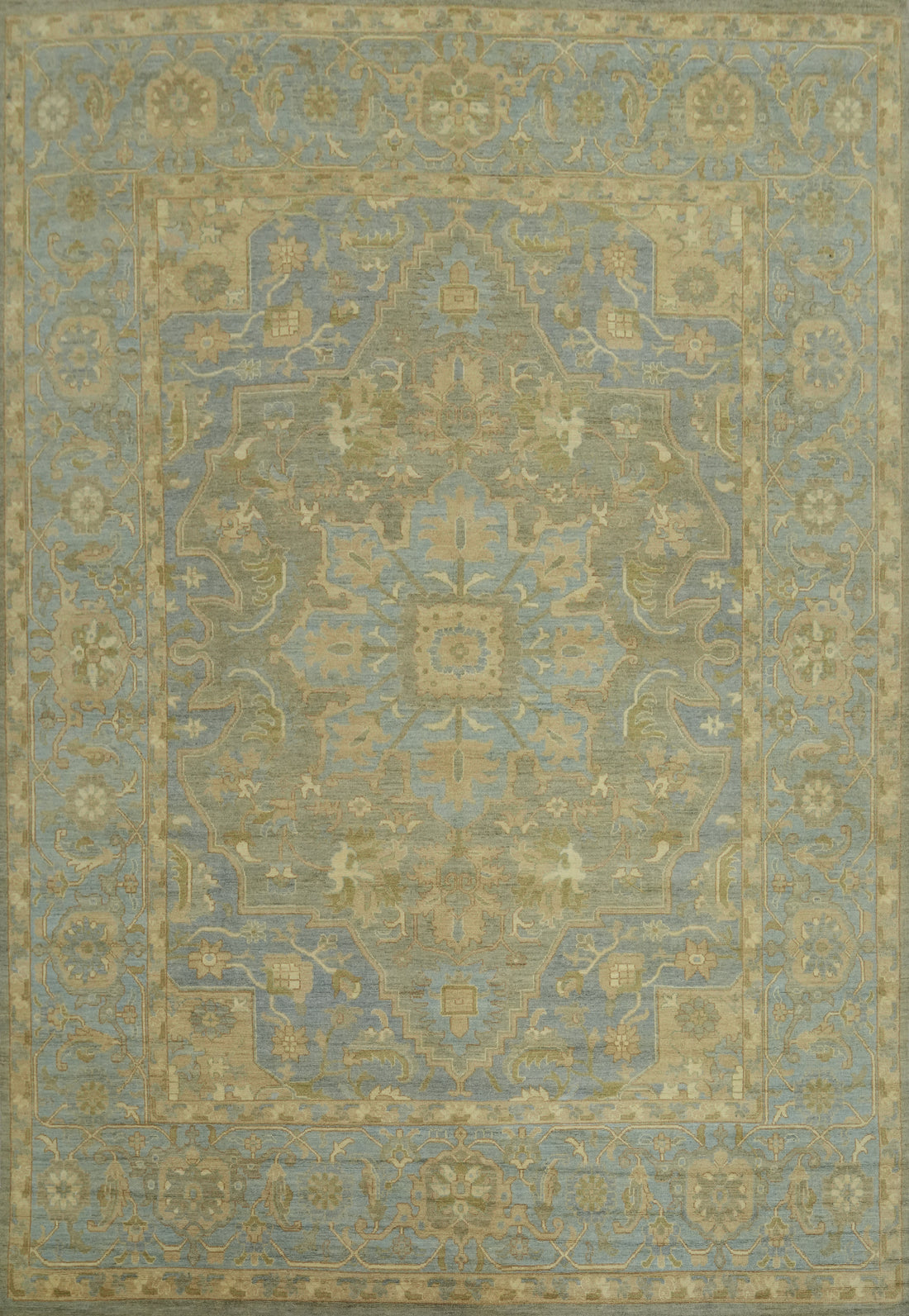 Handmade Blue Oushak Vegetable Dye Large Rug 12x15