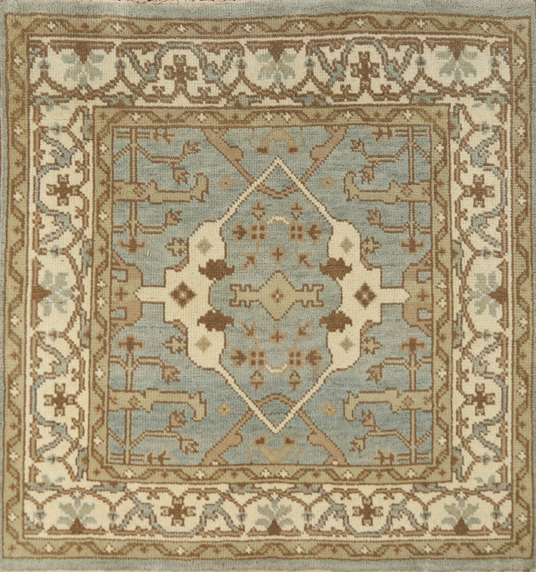 Light Blue Square Wool Oushak Indian Rug 4x4