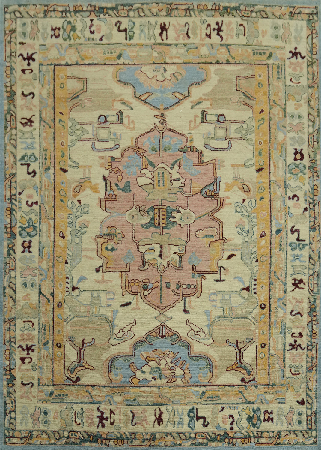 Vegetable Dye Wool Oushak Turkish Area Rug 9x12
