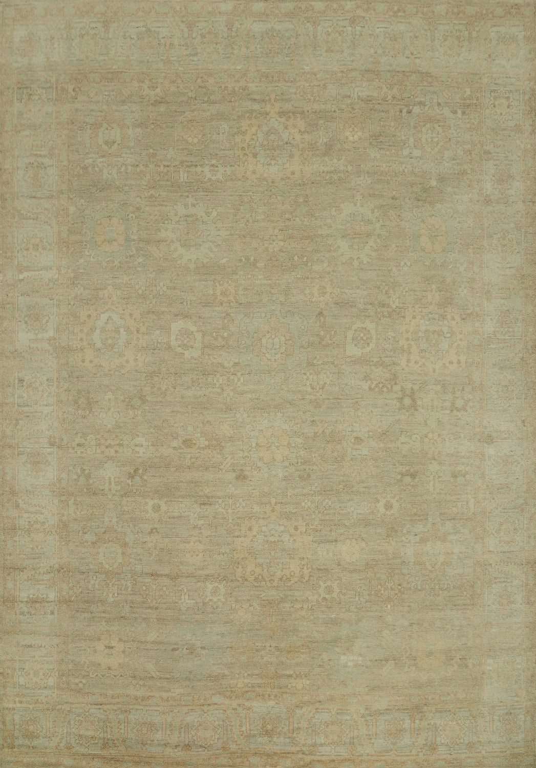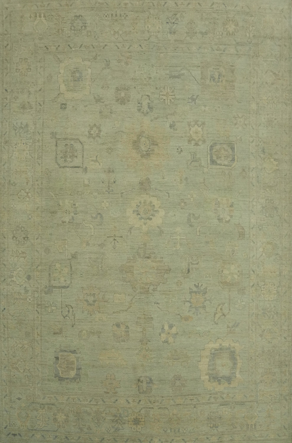 Vegetable Dye Green Oushak Turkish Area Rug 9x12