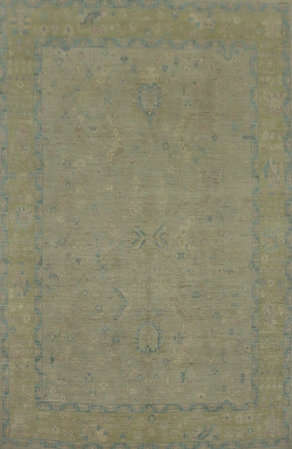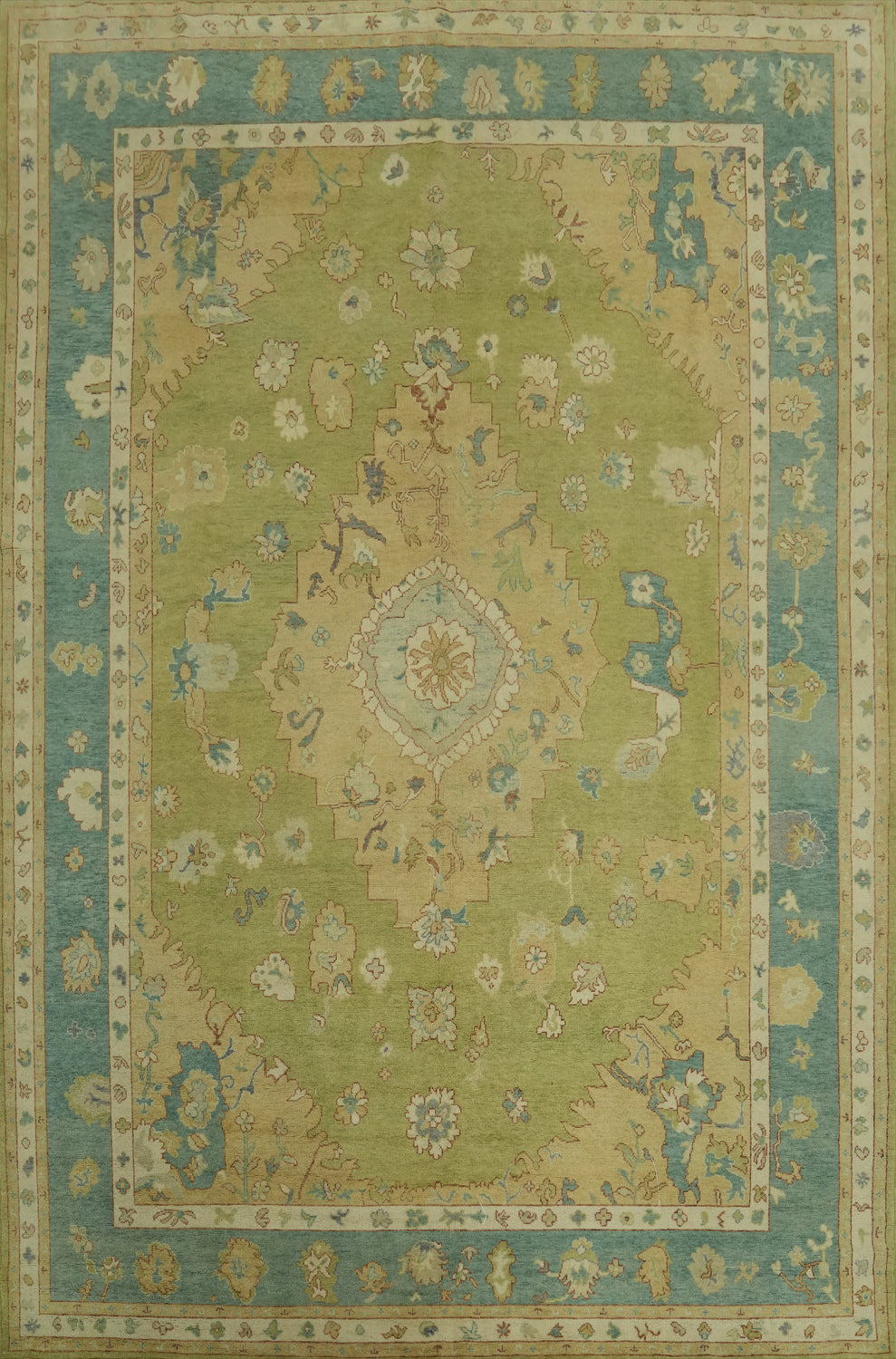 Vegetable Dye Green Oushak Turkish Large Rug 10x14