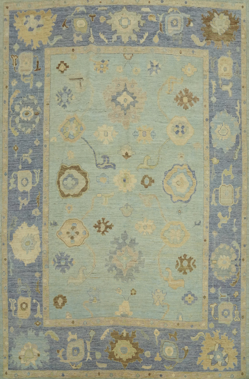 Handmade Blue Oushak Vegetable Dye Area Rug 10x13