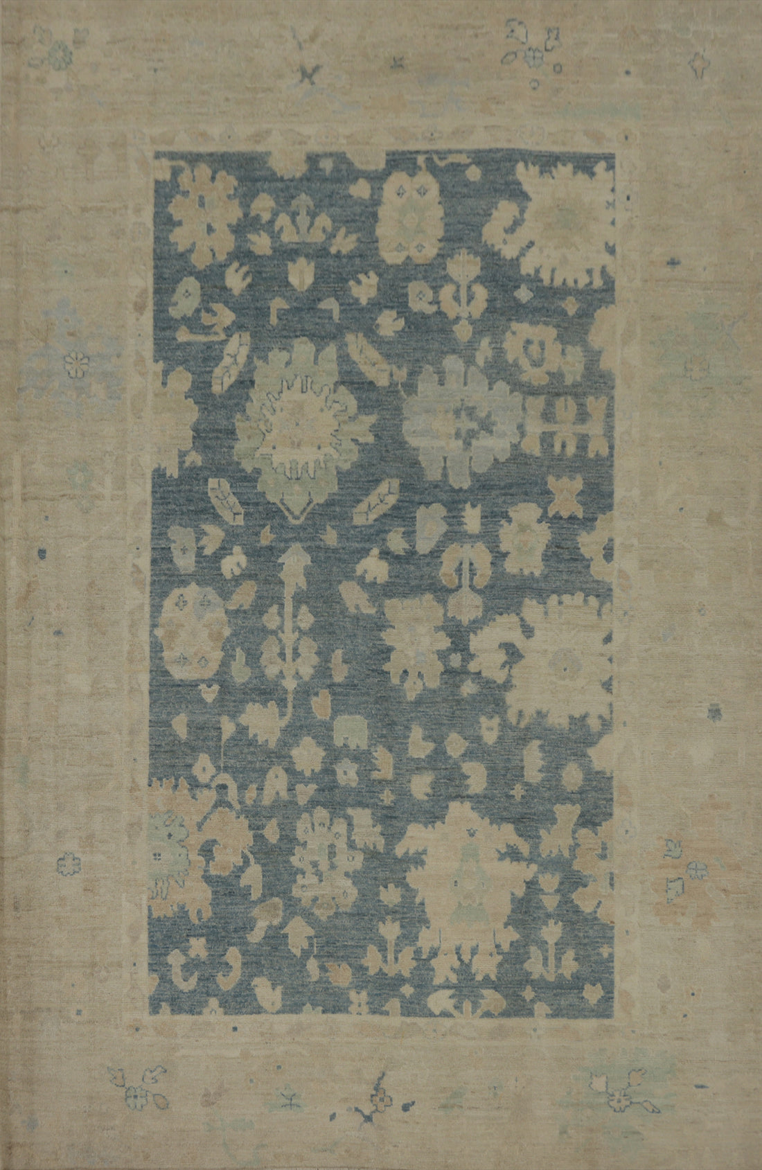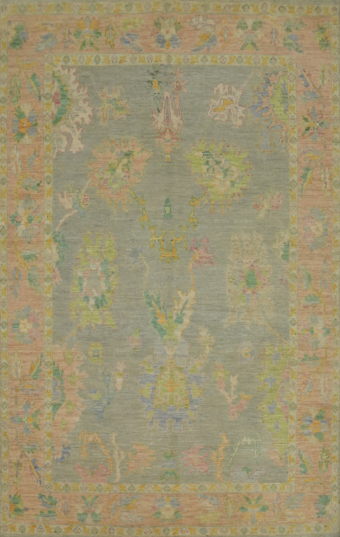 Vegetable Dye Floral Oushak Turkish Area Rug 6x9