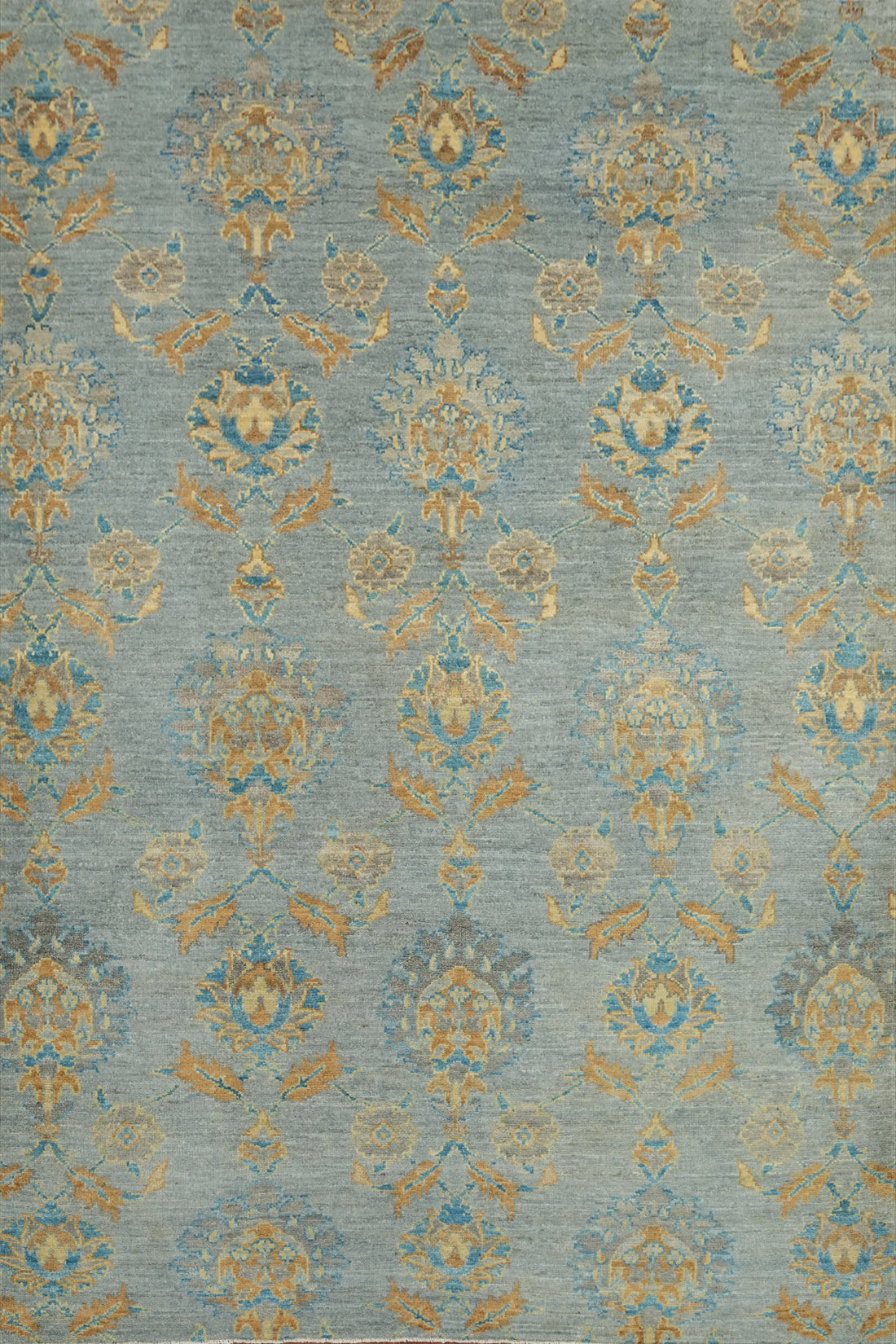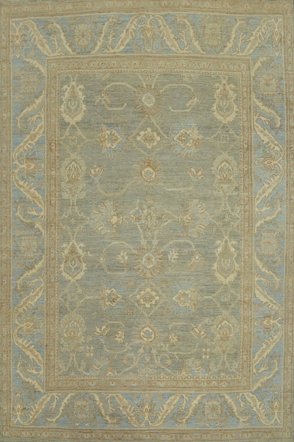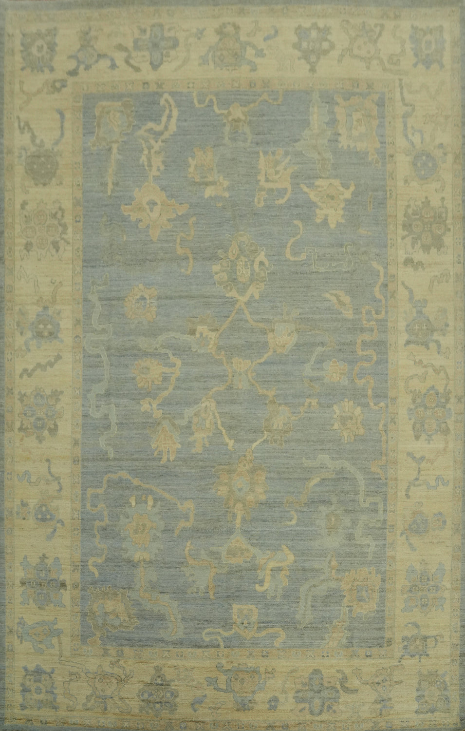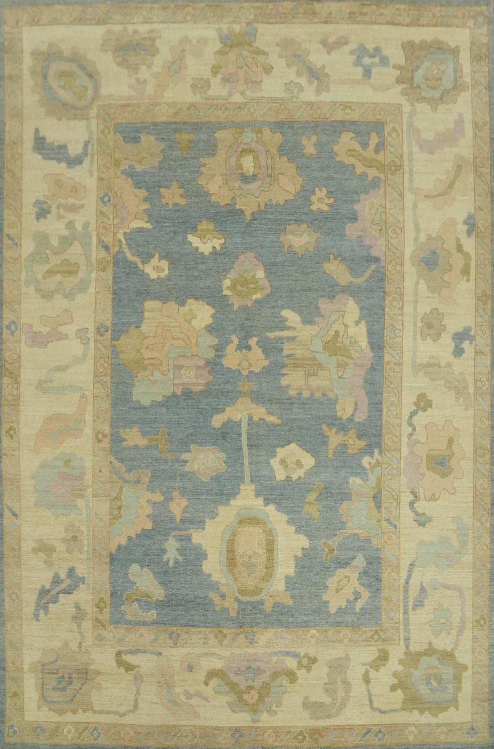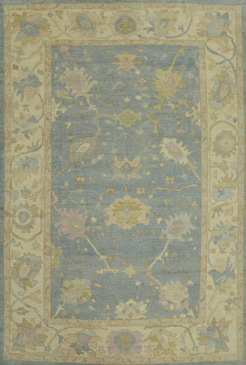Handmade Blue Floral Oushak Vegetable Dye Area Rug 9x12