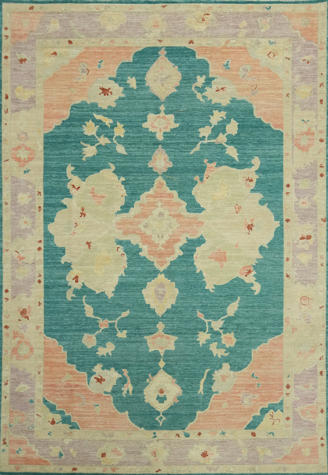 Handmade Teal Oushak Vegetable Dye Area Rug 9x12
