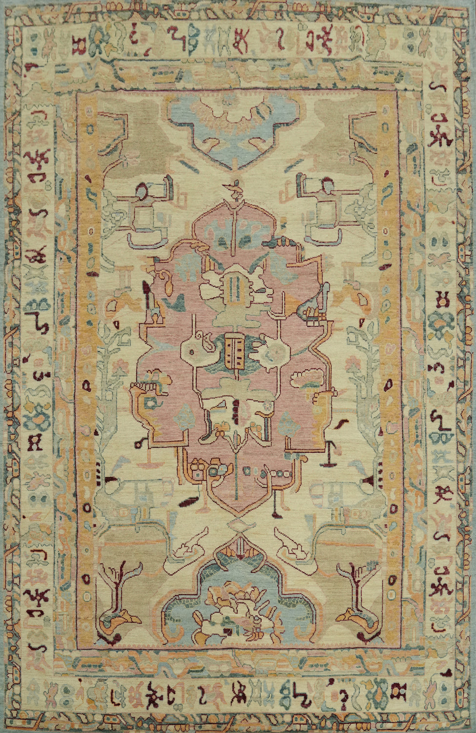 Vegetable Dye Wool Oushak Turkish Area Rug 6x9