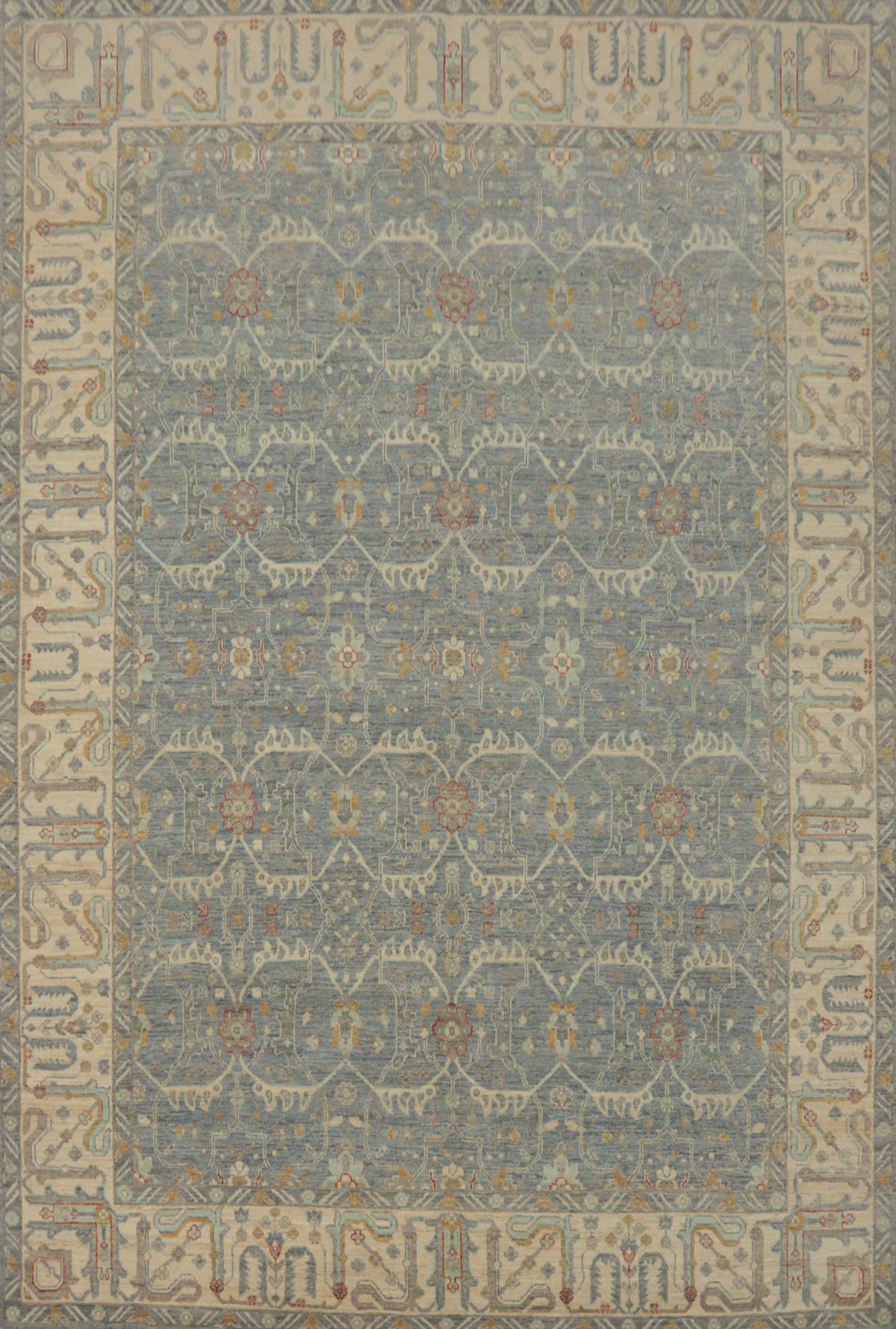 Vegetable Dye Blue Oushak Turkish Area Rug 8x10