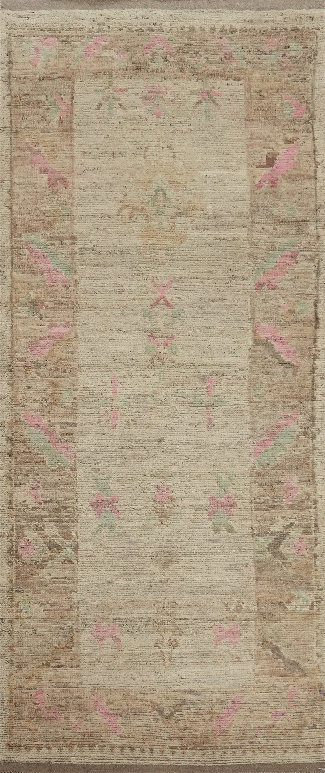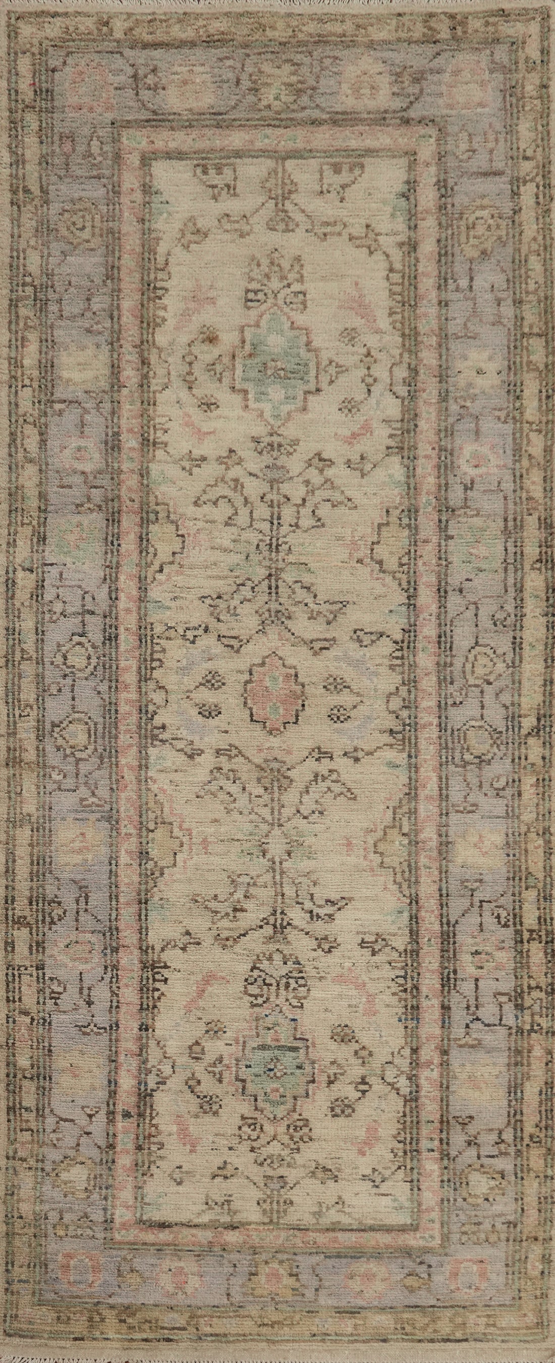 Vegetable Dye Oushak Turkish Runner Rug 3x7