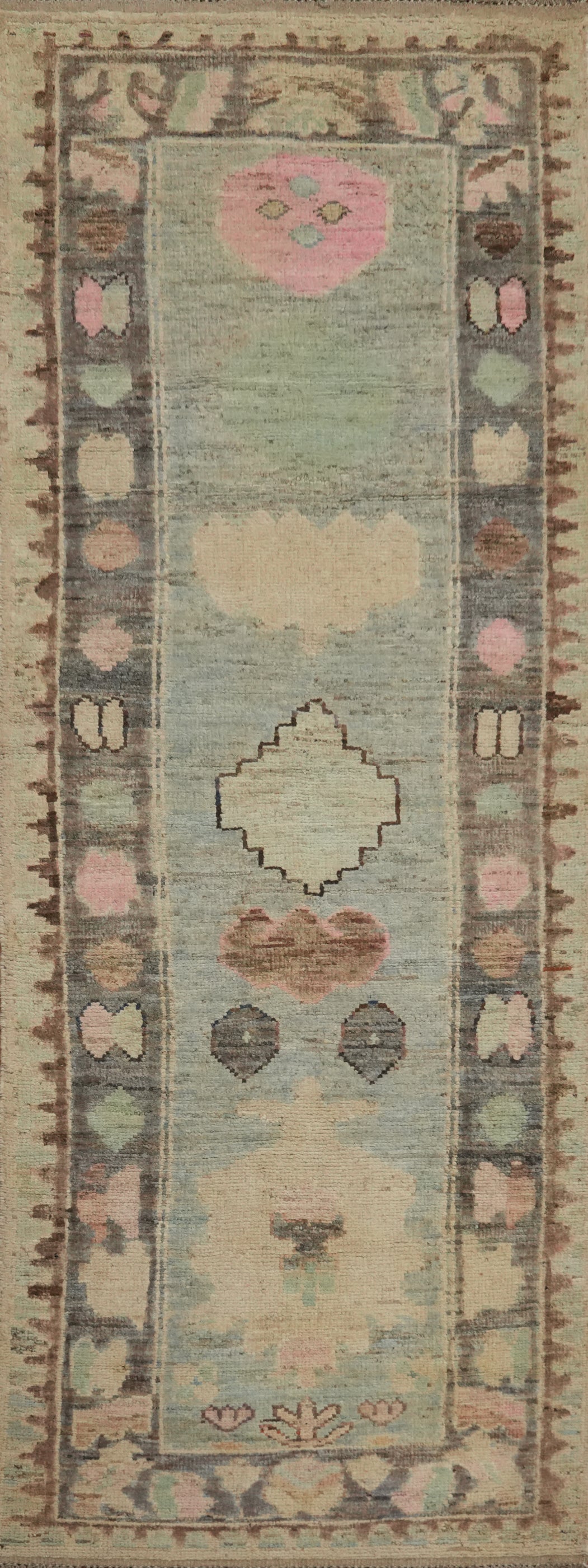 Vegetable Dye Oushak Turkish Runner Rug 3x10