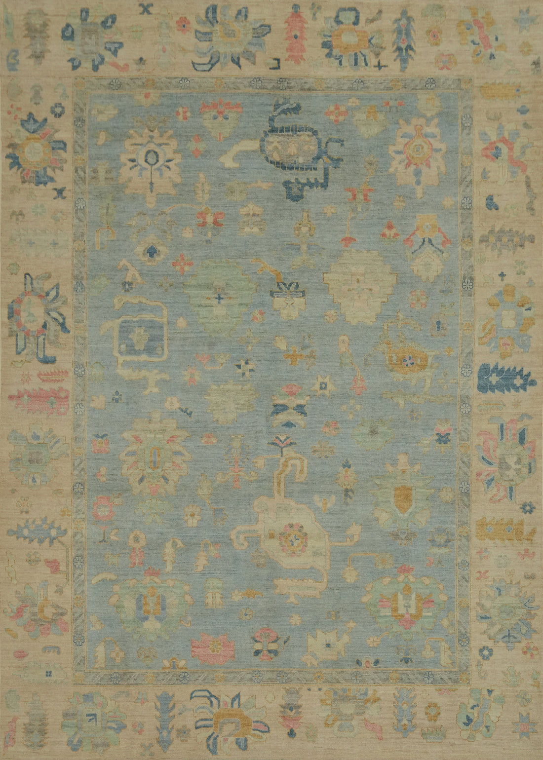 Vegetable Dye Oushak Turkish Area Rug 9x11