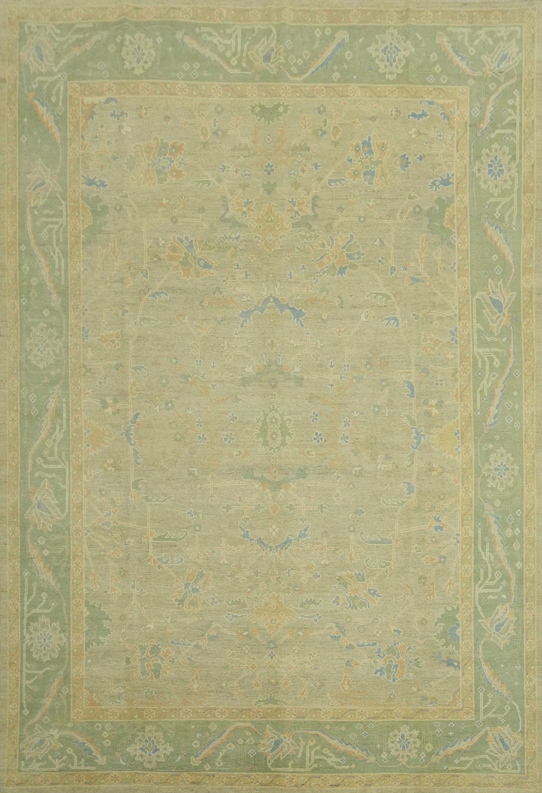 Vegetable Dye Green Oushak Turkish Area Rug 9x12