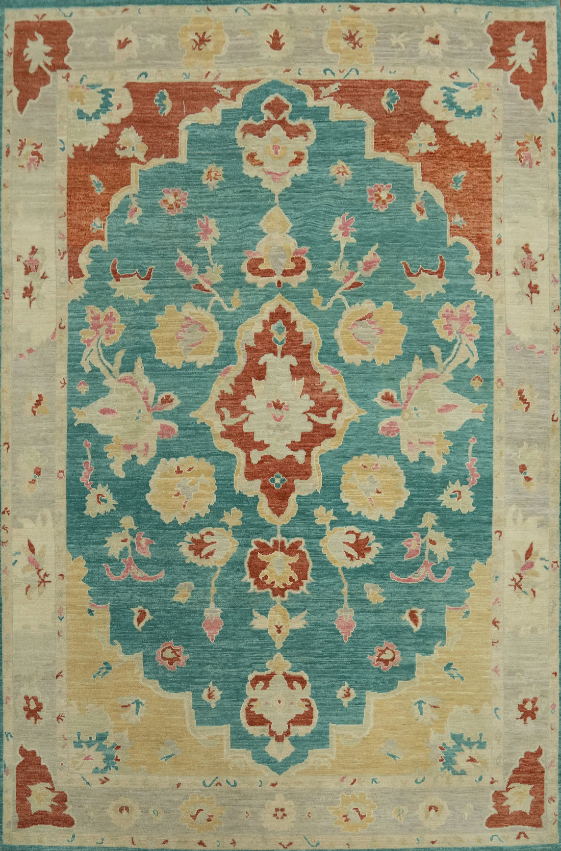 Vegetable Dye Oushak Turkish Foyer Rug 4x6