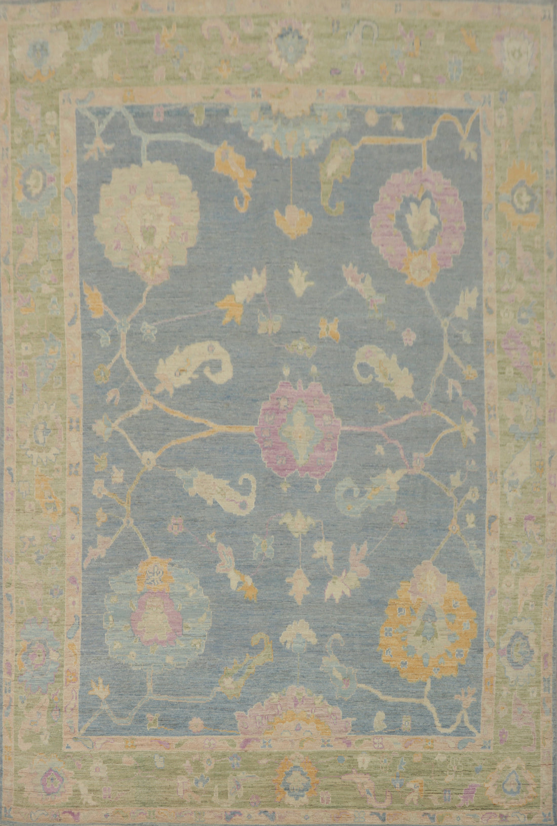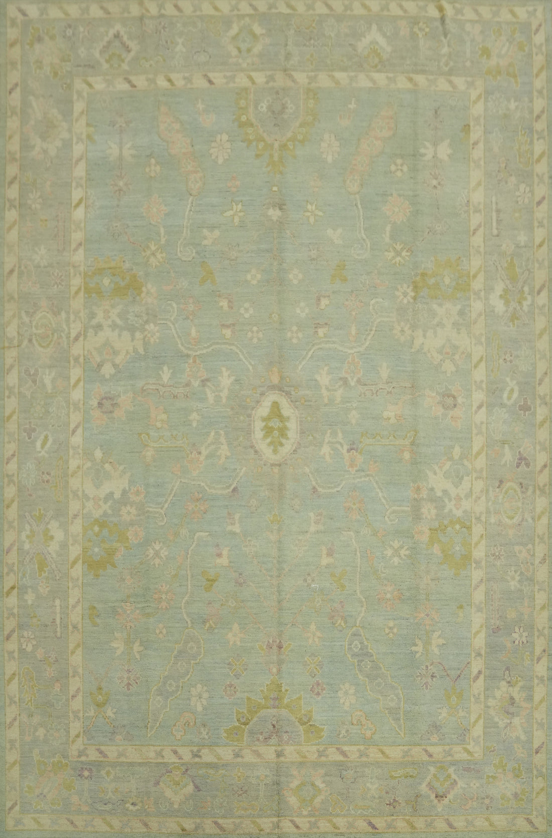 Light Blue Wool Oushak Vegetable Dye Area Rug 9x12