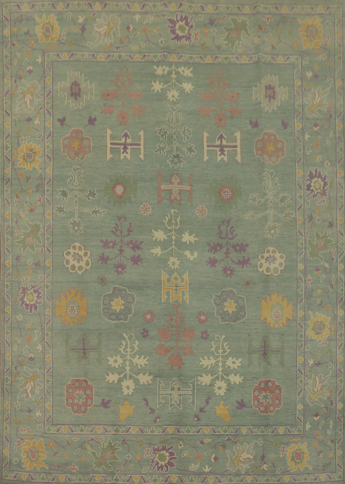 Vegetable Dye Wool Oushak Turkish Area Rug 9x12