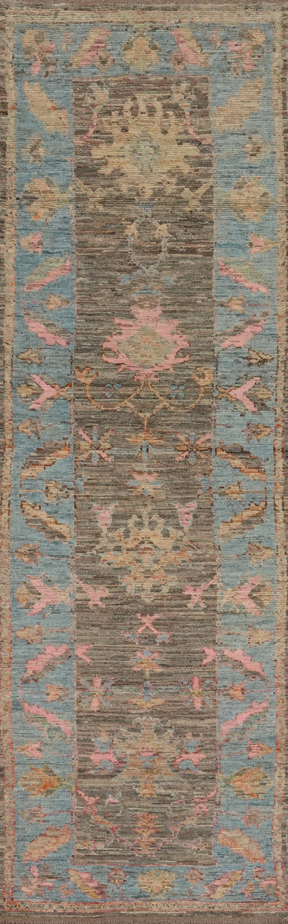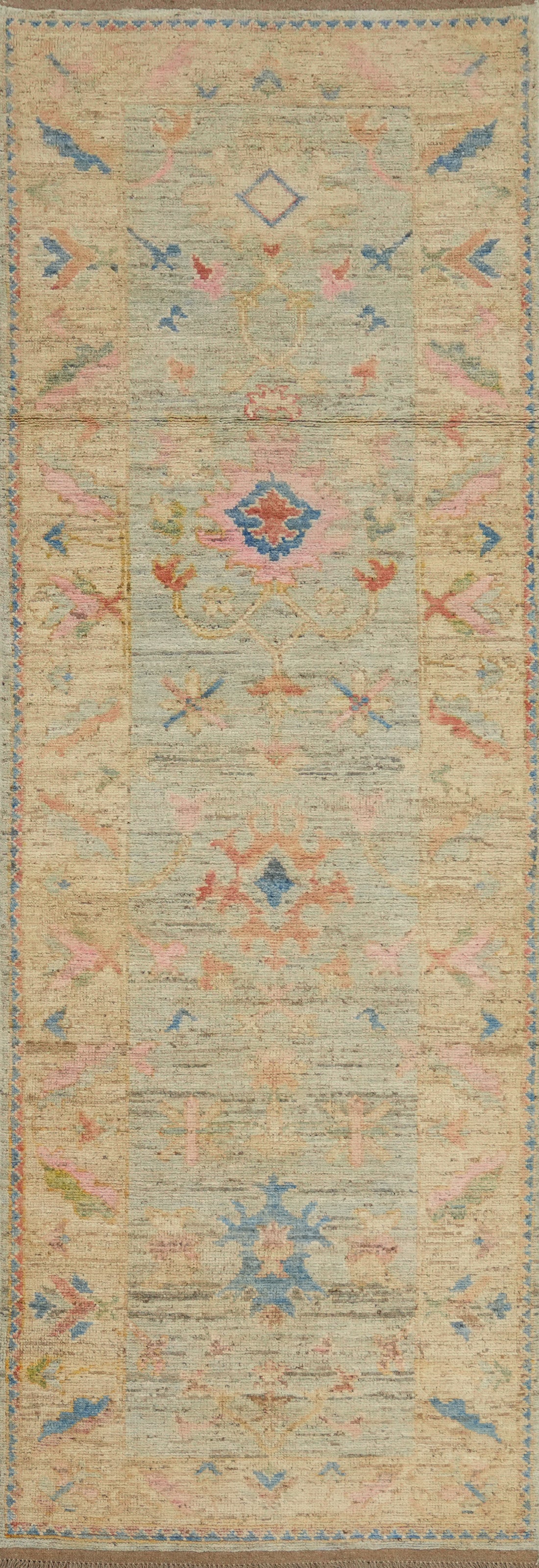 Vegetable Dye Oushak Turkish Runner Rug 3x13