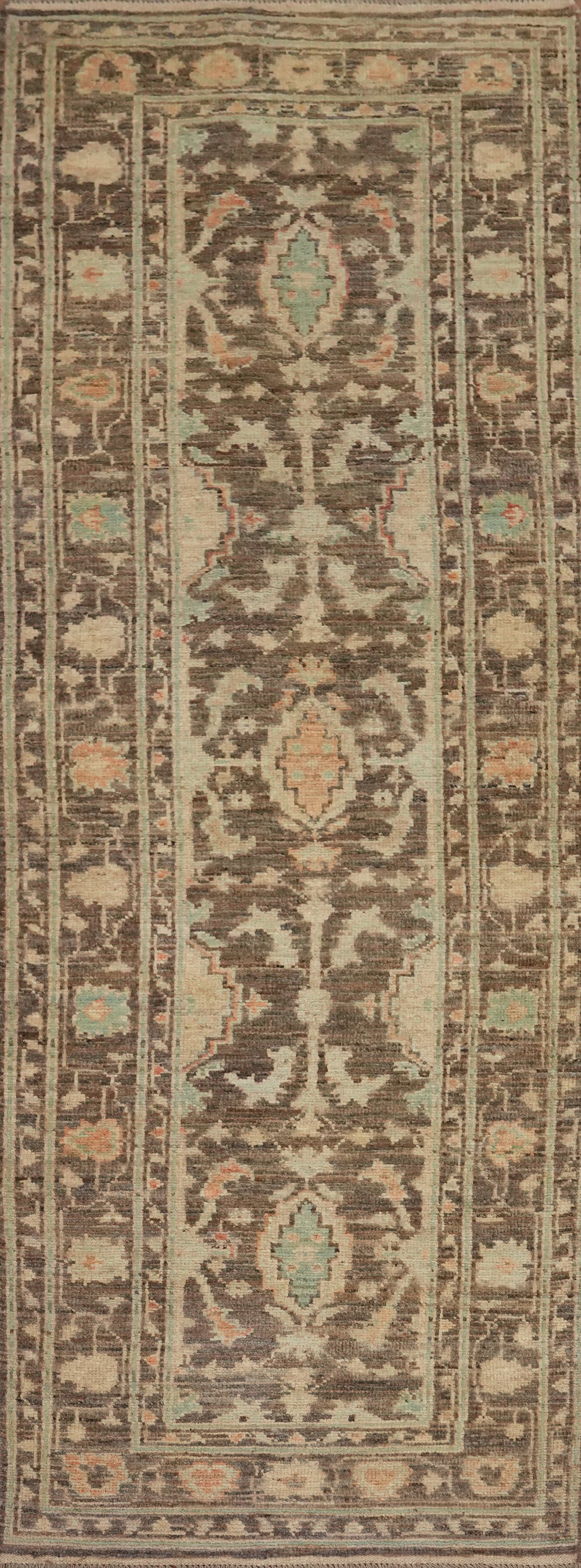 Vegetable Dye Brown Oushak Turkish Runner Rug 3x10
