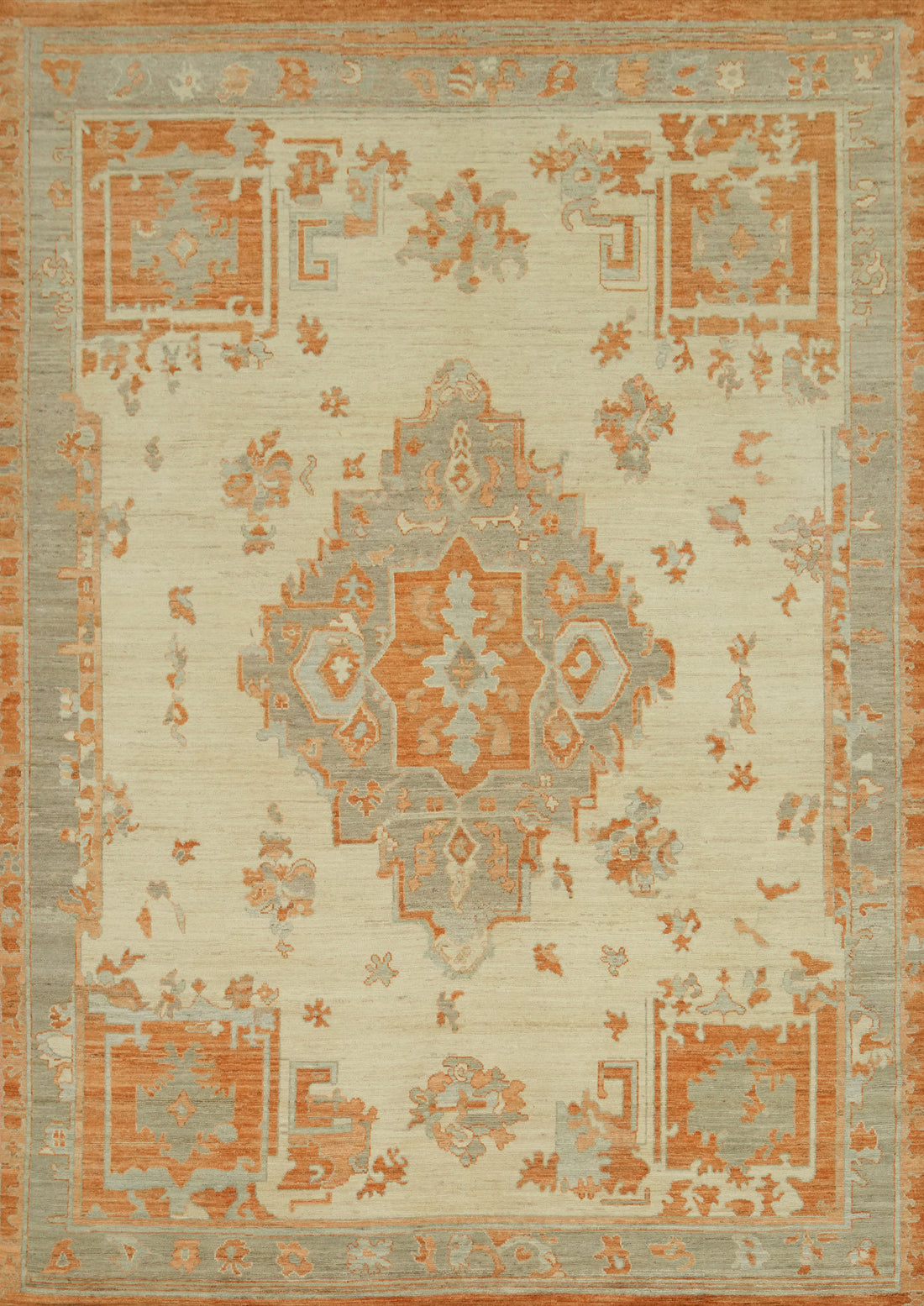 Vegetable Dye Wool Oushak Turkish Area Rug 6x9