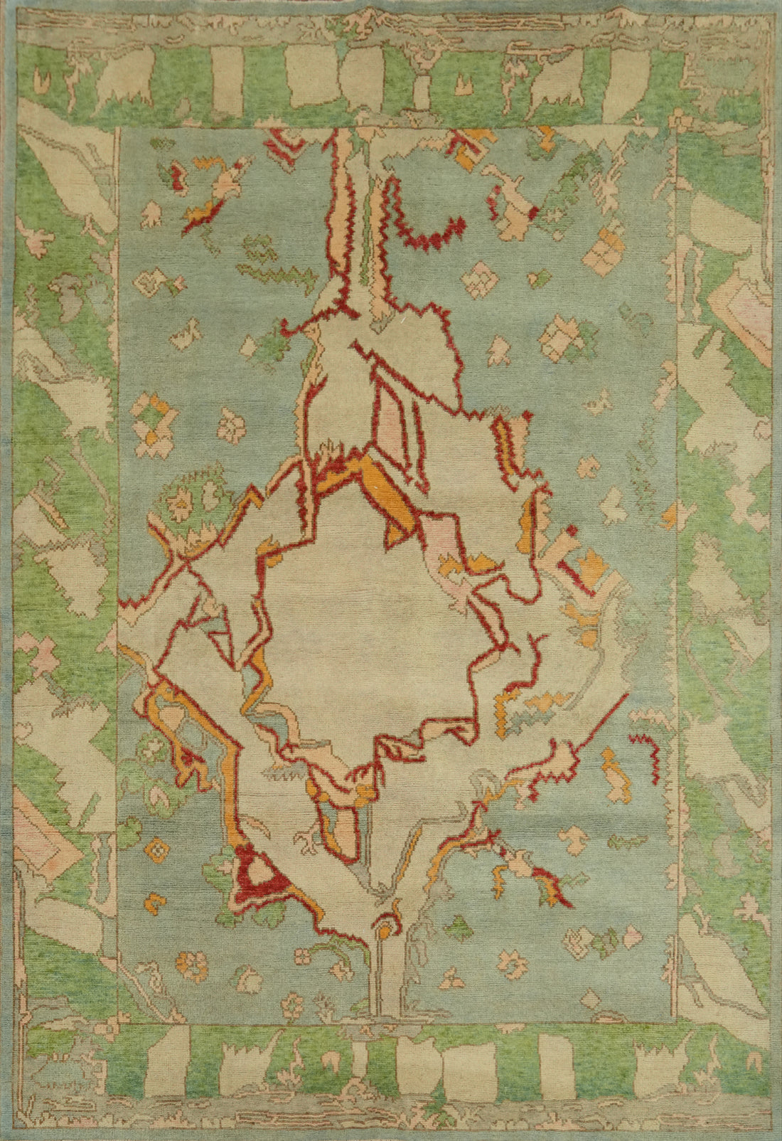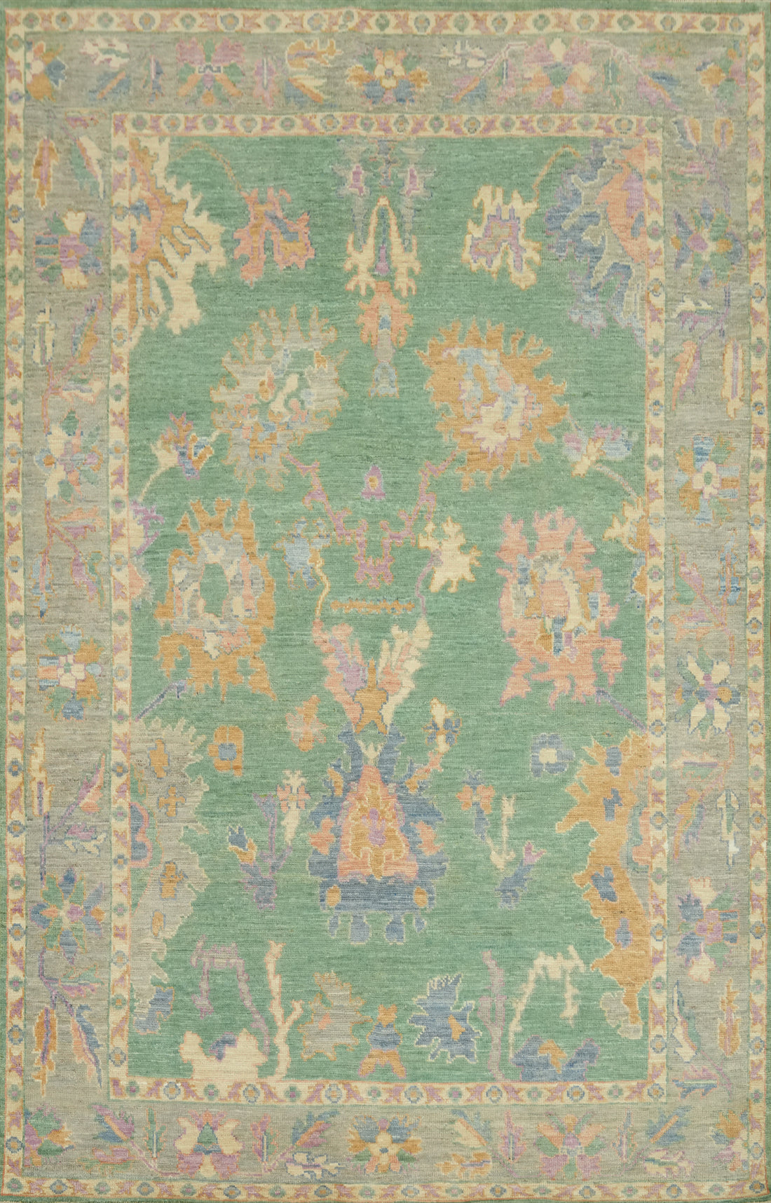 Vegetable Dye Green Oushak Turkish Area Rug 6x9