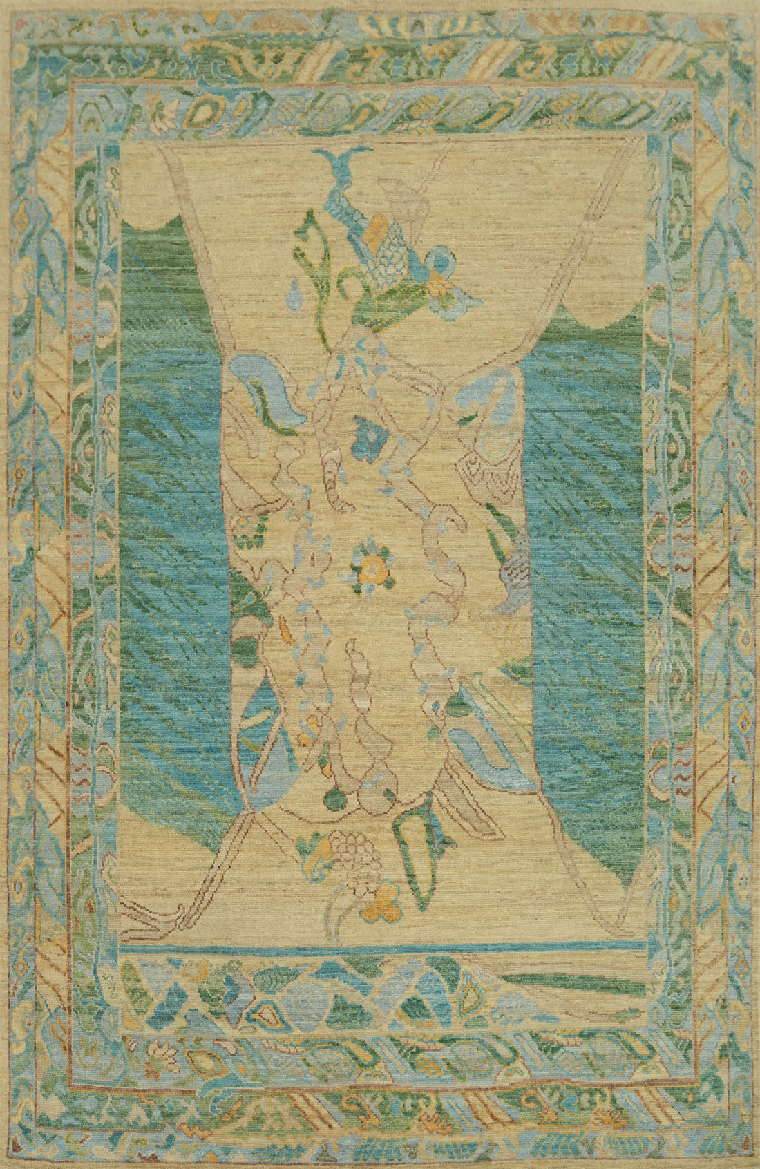 Vegetable Dye Wool Oushak Turkish Rug 4x6