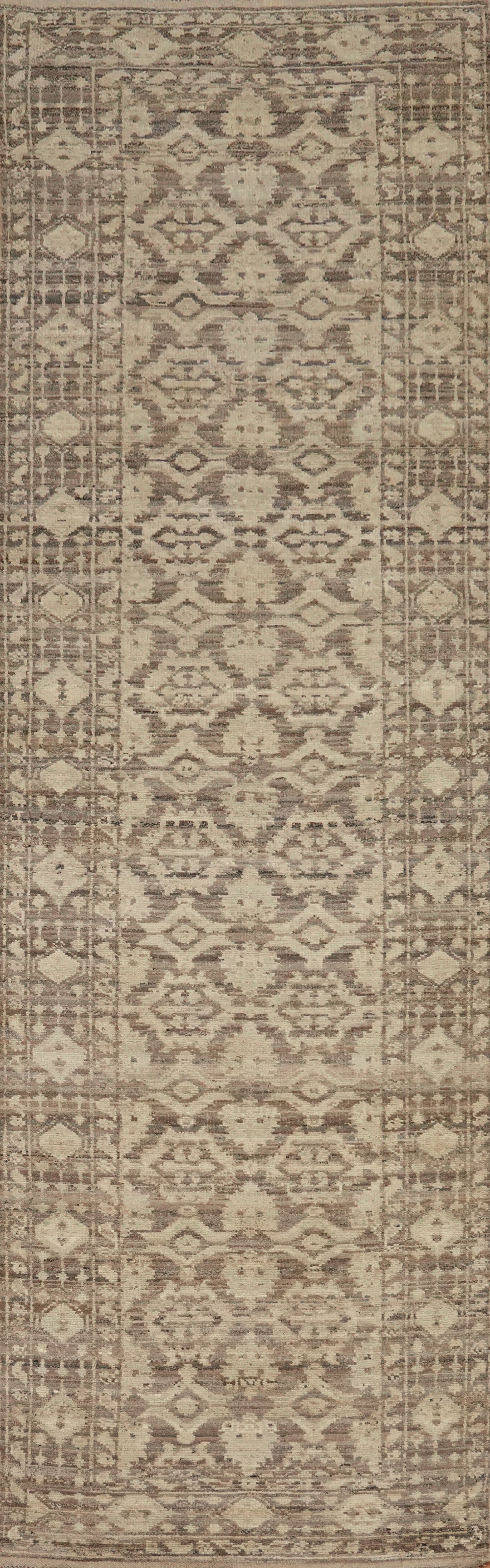 Vegetable Dye Brown Oushak Turkish Runner Rug 4x19
