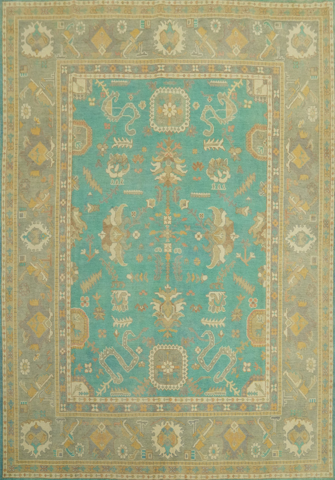 Vegetable Dye Wool Oushak Turkish Area Rug 9x12